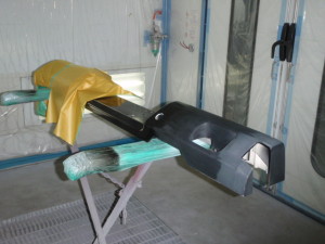 サフェーサー乾燥後、足付け作業、養生作業、シリコンオフで脱脂作業、