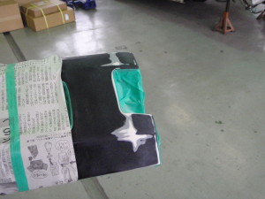 キズの研ぎ出しを行い、パテ修正を行いました。