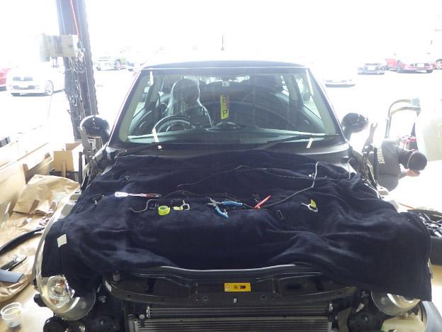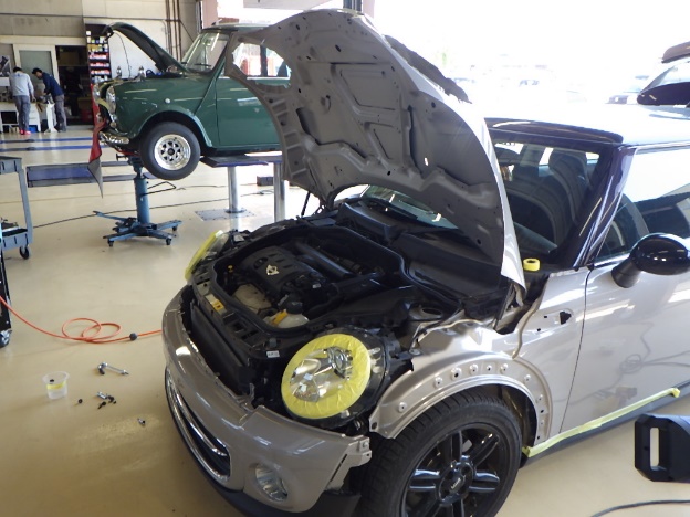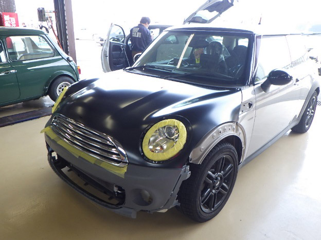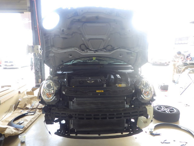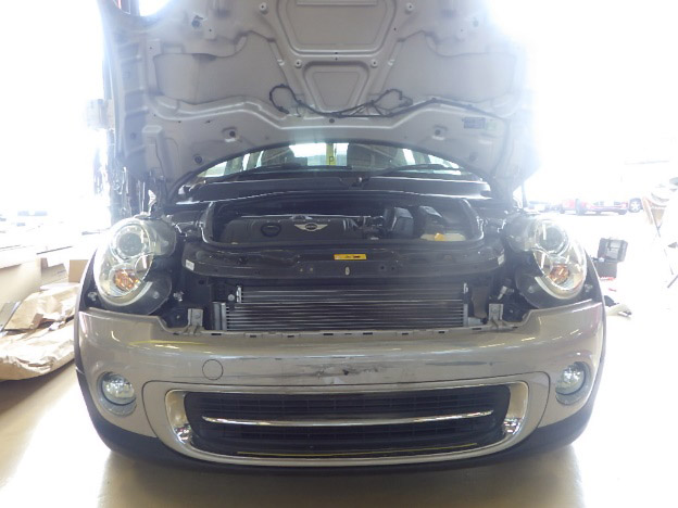 Home » 未分類 » 【鈑金塗装】【事故】兵庫県神戸市、W様、2013y、MINI、R56、フロントバンパーエンジンフード損傷へこみ修理レポートです!ありがとうございました。