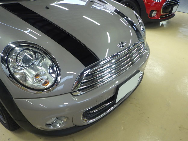 【鈑金塗装】【事故】兵庫県神戸市、W様、2013y、MINI、R56、フロントバンパーエンジンフード損傷へこみ修理レポートです!ありがとうございました。