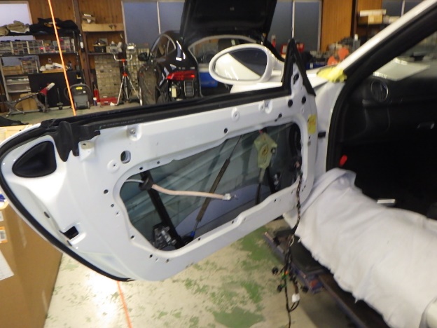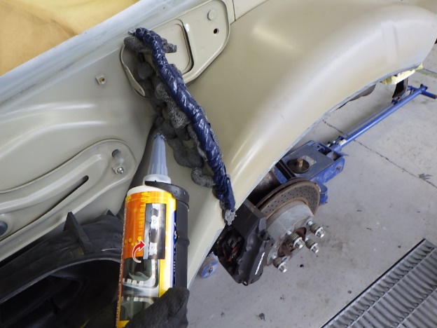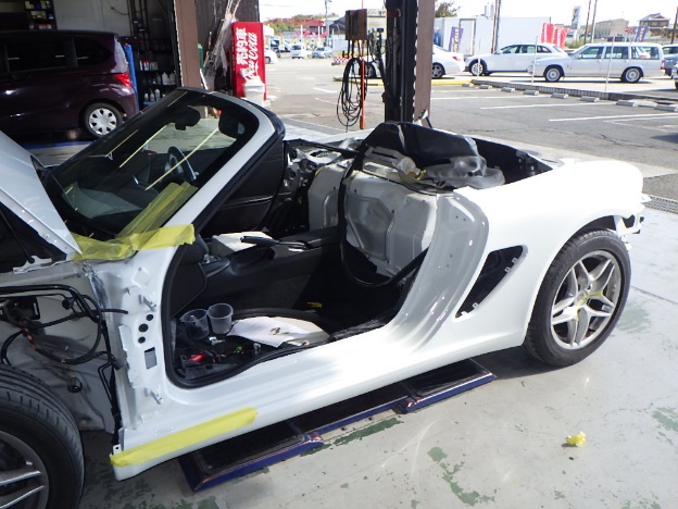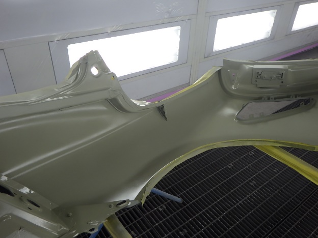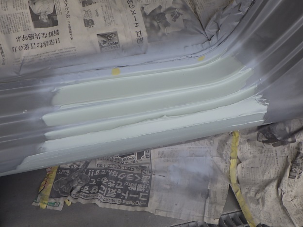 プライマー乾燥の後、溶接箇所、修正箇所にパテ付け作業を行いました。