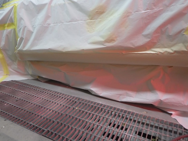 塗装作業を行う為、足付け作業、マスキング作業、脱脂作業、エアブローを行い、