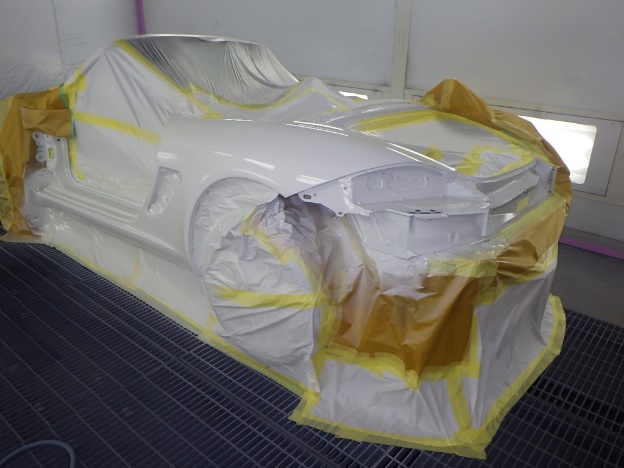 ベースコート(白)、トップコート(クリヤー)の順に塗装作業を行いました。