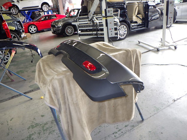 【鈑金塗装】【事故】兵庫県神戸市、Y様、2009y、MINI、3door、R56、リアバンパー損傷レポートです!有難うございましたm(__)m
