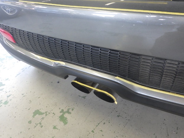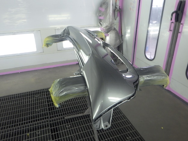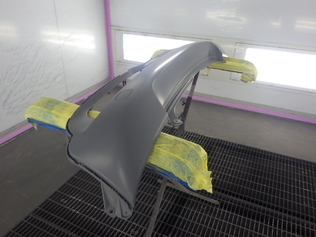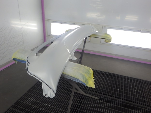 仮合わせ作業の後、塗装準備(足付け、マスキング、脱脂、エアブロー)を行い、
