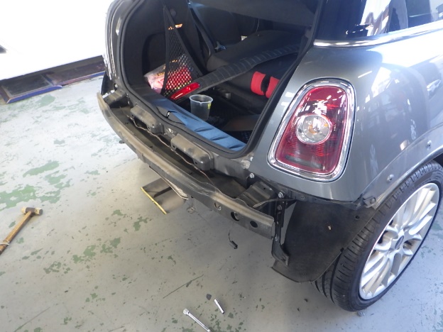 Home » 未分類 » 【鈑金塗装】【事故】兵庫県神戸市、Y様、2009y、MINI、3door、R56、リアバンパー損傷レポートです!有難うございましたm(__)m