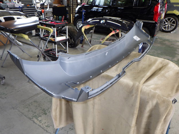 分解作業の後、新品バンパーの仮合わせ作業を行いました。