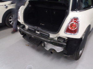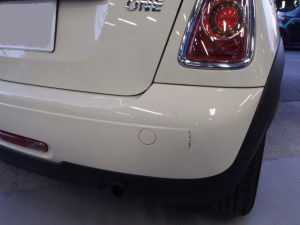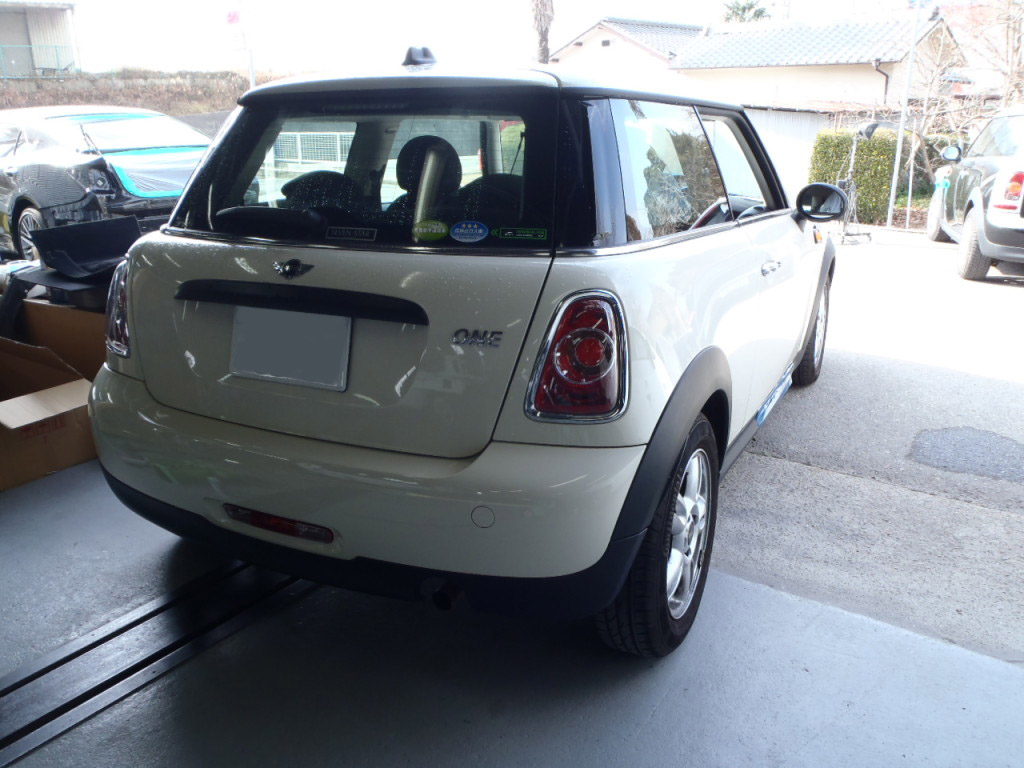 Home » 未分類 » 【鈑金塗装】【事故】兵庫県神戸市、Y様、2009y、MINI、R56、リアバンパー損傷へこみ修理レポートです!ありがとうございました。