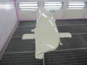 べースコート(白)、トップコート(クリヤー)の順に塗装作業を行いました。