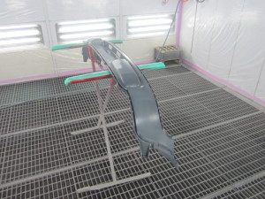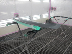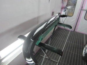 ベースコート(紺)、トップコート(クリヤー)の順に塗装作業を行いました。