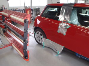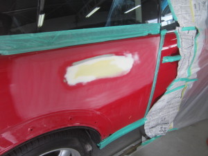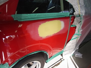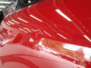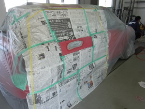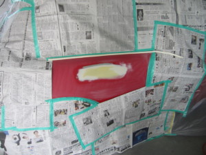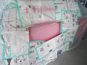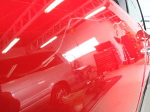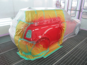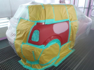 ベースコート(赤)、トップコート(クリヤー)の順に塗装作業を行いました。