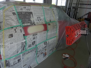 サンディング作業を終えた後、足付け、マスキング、脱脂、エアブローを行い、