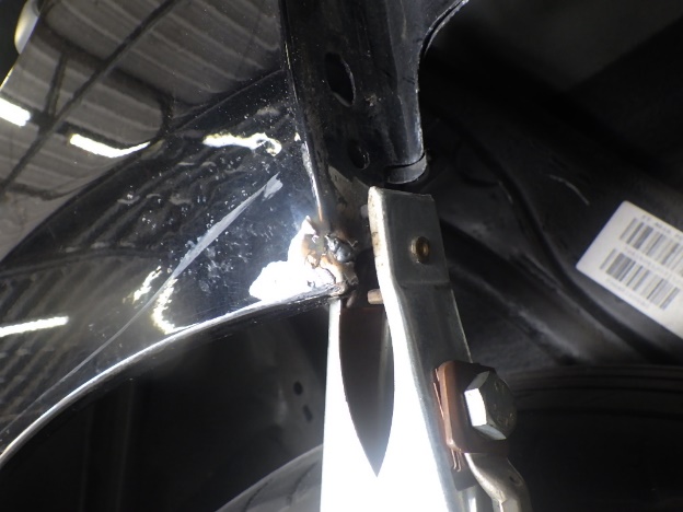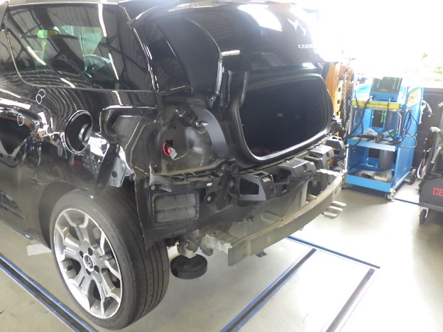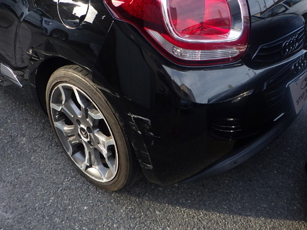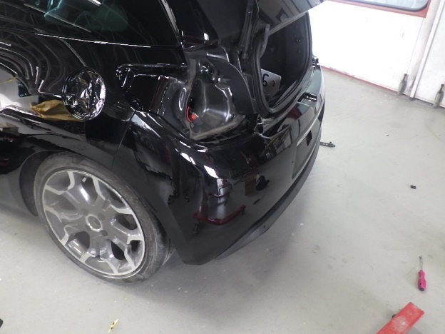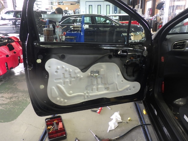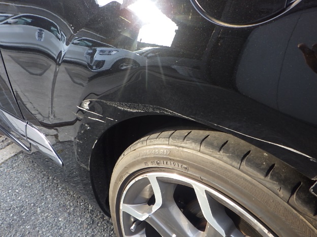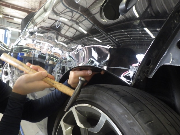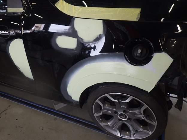 プライマー乾燥の後、損傷箇所、凹み箇所にパテ付け作業を行いました。