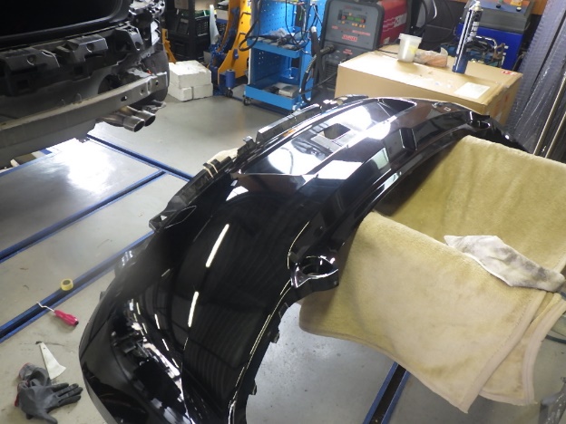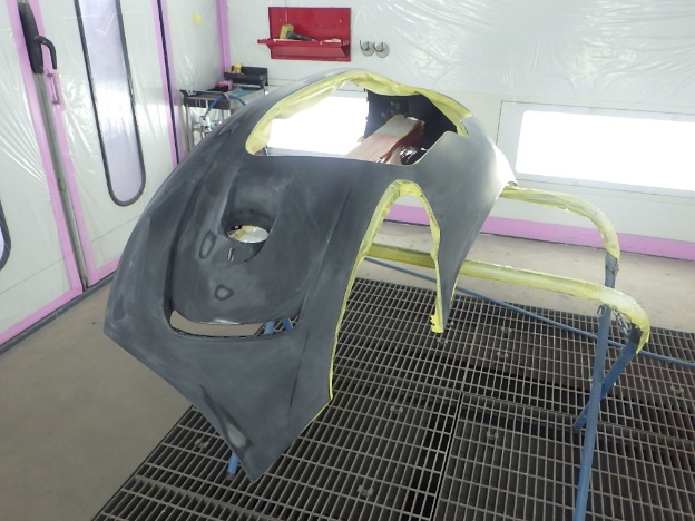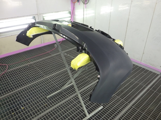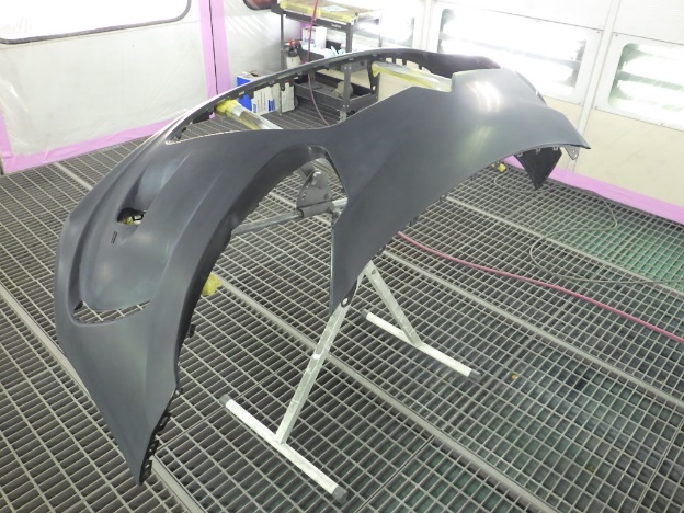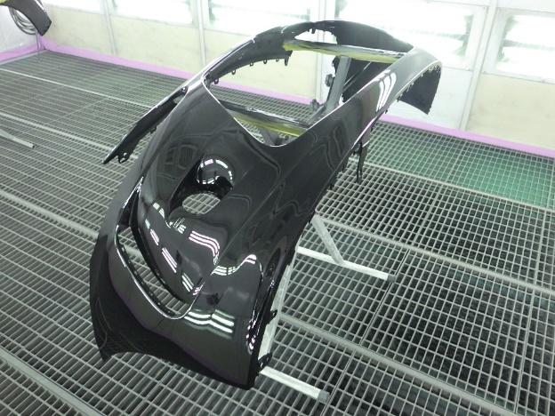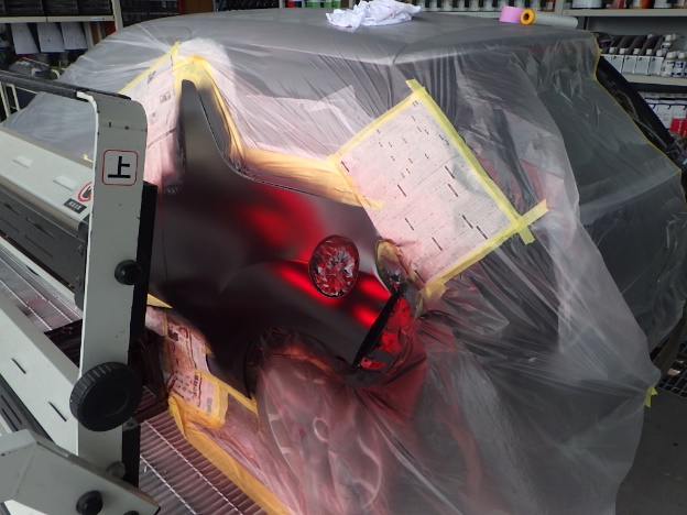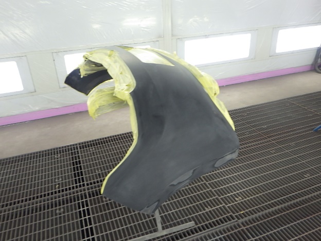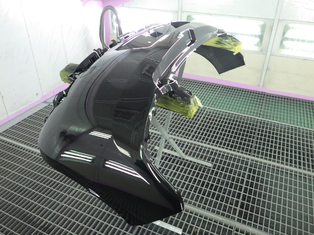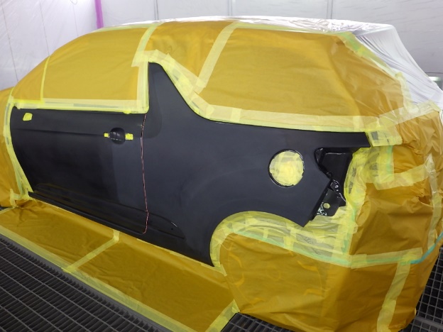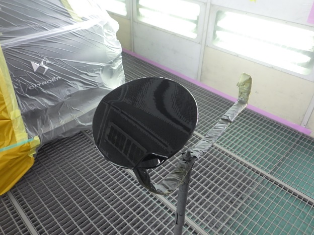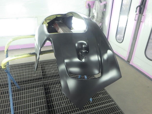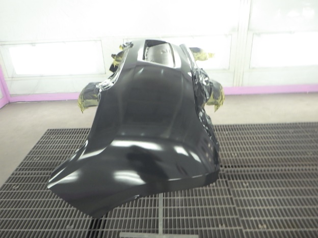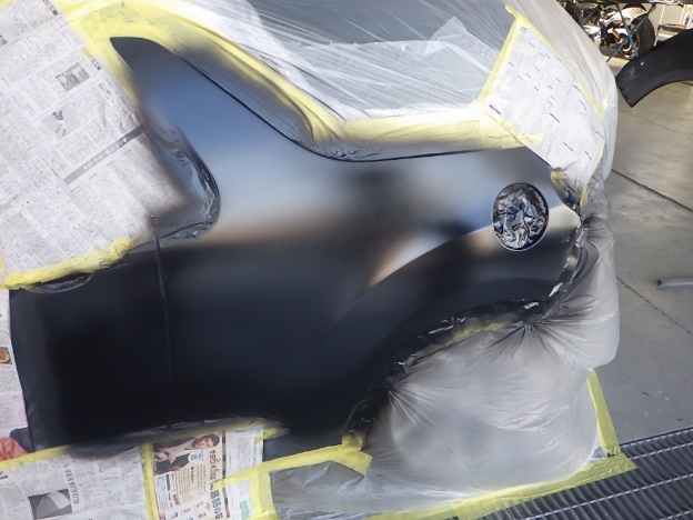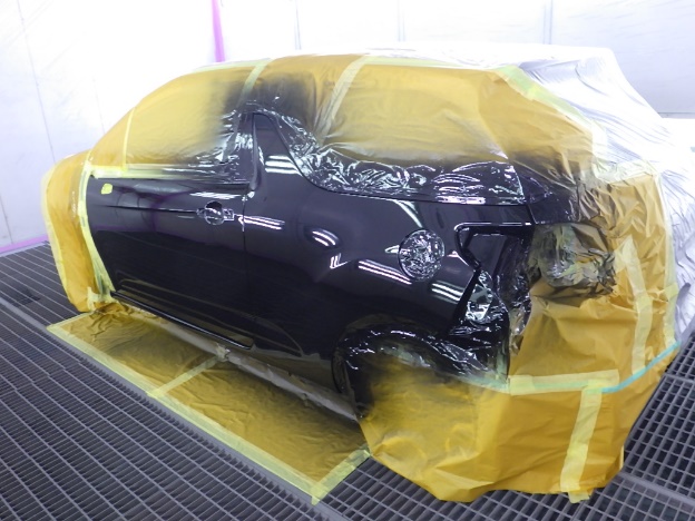 ベースコート(黒)、トップコート(クリヤー)の順に塗装作業を行いました。