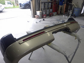 中古バンパーも修正作業を行う為、分解作業を行いました。
