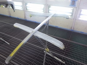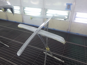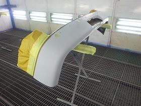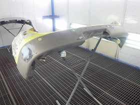 分解作業の後、パテ修正作業を行い、サフェーサーの塗布作業を行いました。
