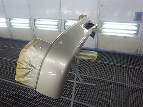 ベースコート(金)、トップコート(クリヤー)の順に塗装作業を行いました。