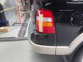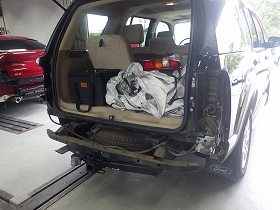 リヤバンパー損傷でのお預かりになります。 まず初めに、損傷箇所内部への損傷の有無確認の為、 テールランプ、リヤバンパーの順に、分解作業を行いました。 内部への損…