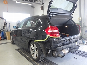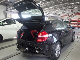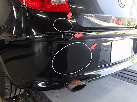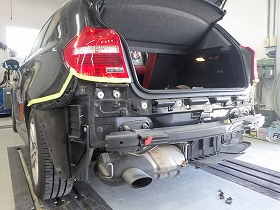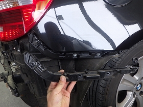 損傷確認、リアバンパー修理の為、分解作業を行いました。