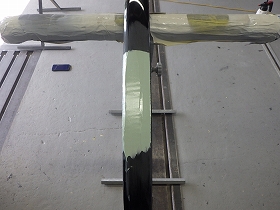 ベースコート(黒)、トップコート(クリヤー)の順に塗装作業を行いました。