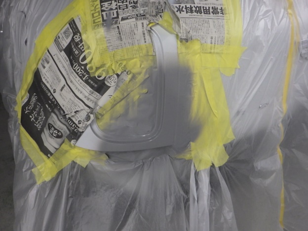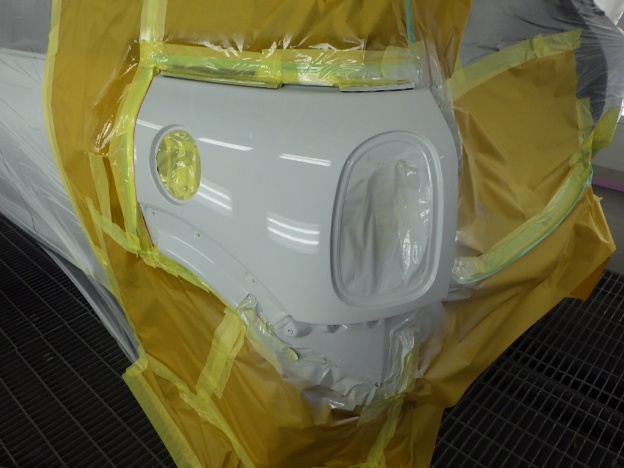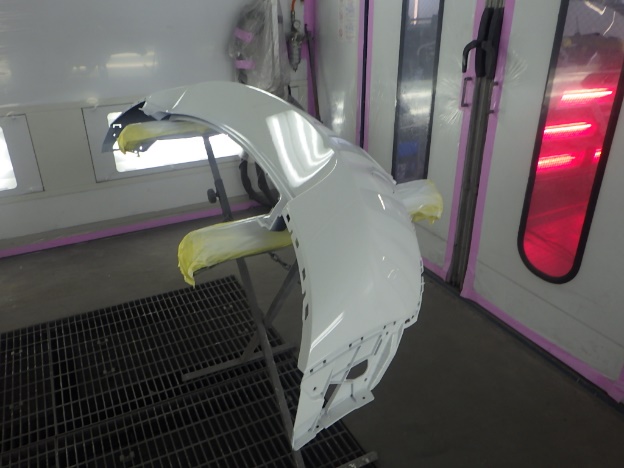 ベースコート(白)、トップコート(クリヤー)の順に塗装作業を行いました。