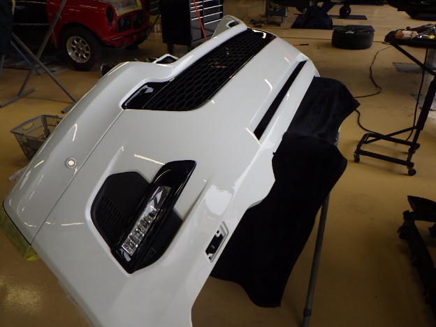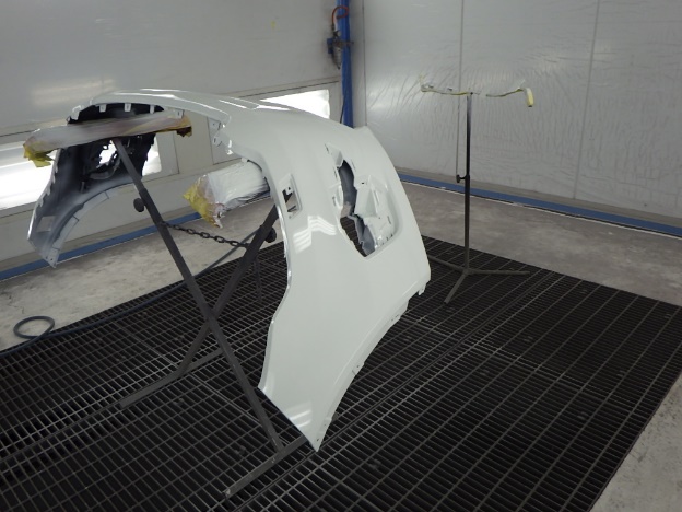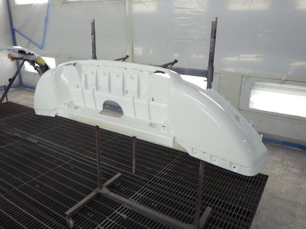 ベースコート(白)、トップコート(クリヤー)の順に塗装作業を行いました。