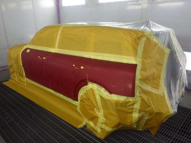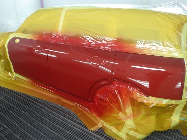 ベースコート(赤)、トップコート(クリヤー)の順に塗装作業を行いました。