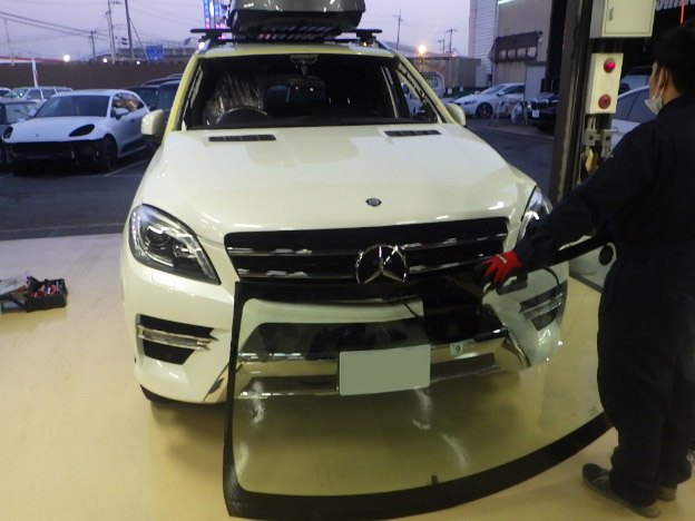 フロント足廻り損傷でのお預かりになります。 入庫後、入庫確認作業を行い、キズ、汚れ防止の為、ハンドルカバー、 シートカバーの取り付けを行いました。 入庫確認の後…