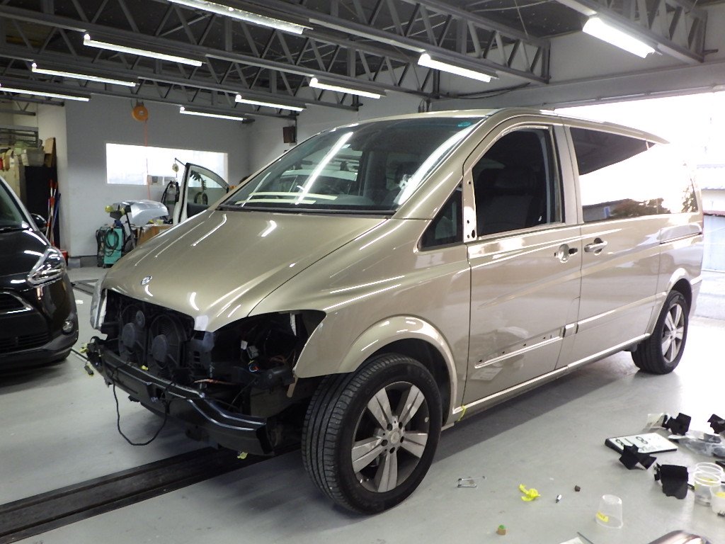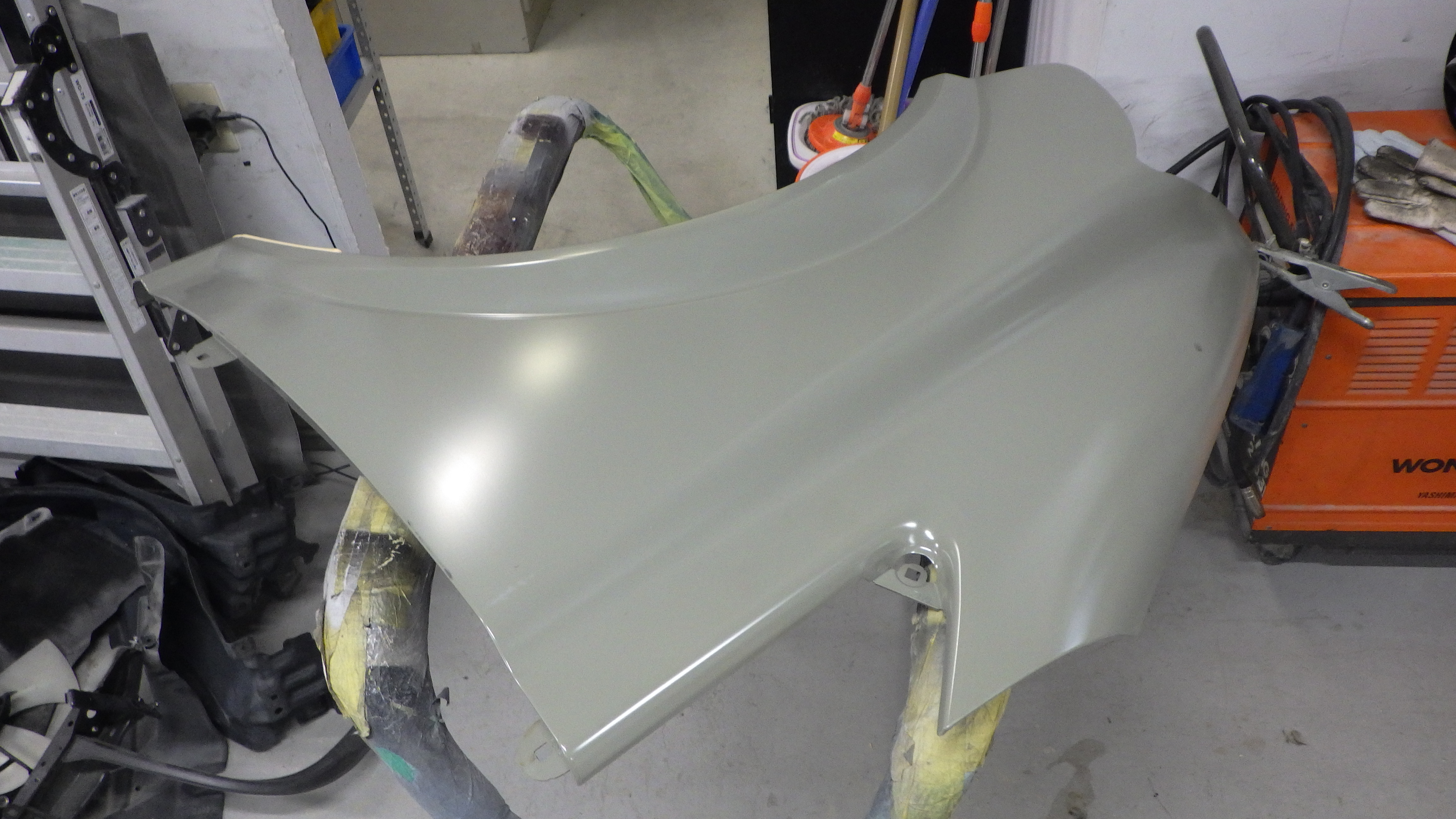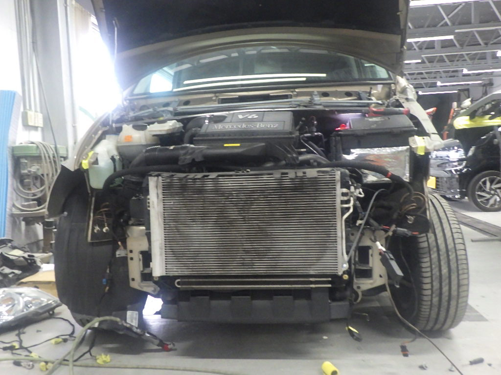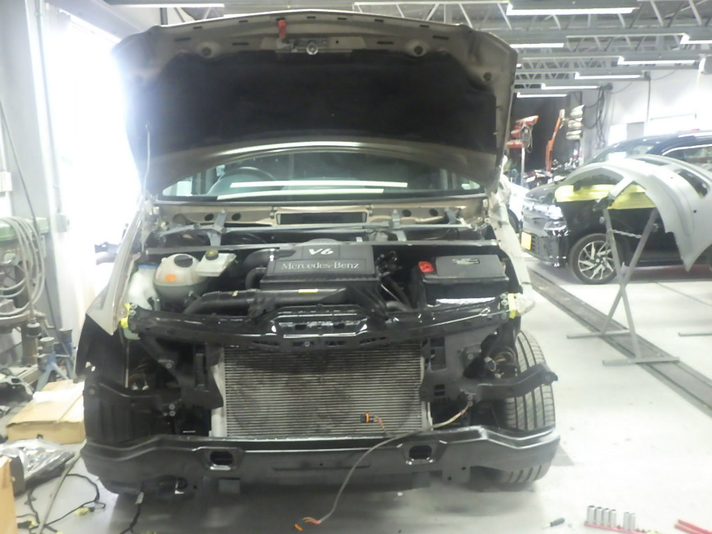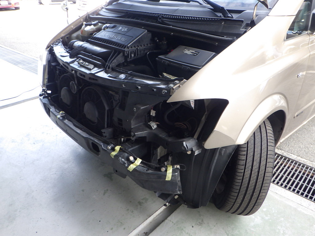 サポートの交換作業の後、フロントフェンダー、ヘッドライト、フロントバンパーの順に、