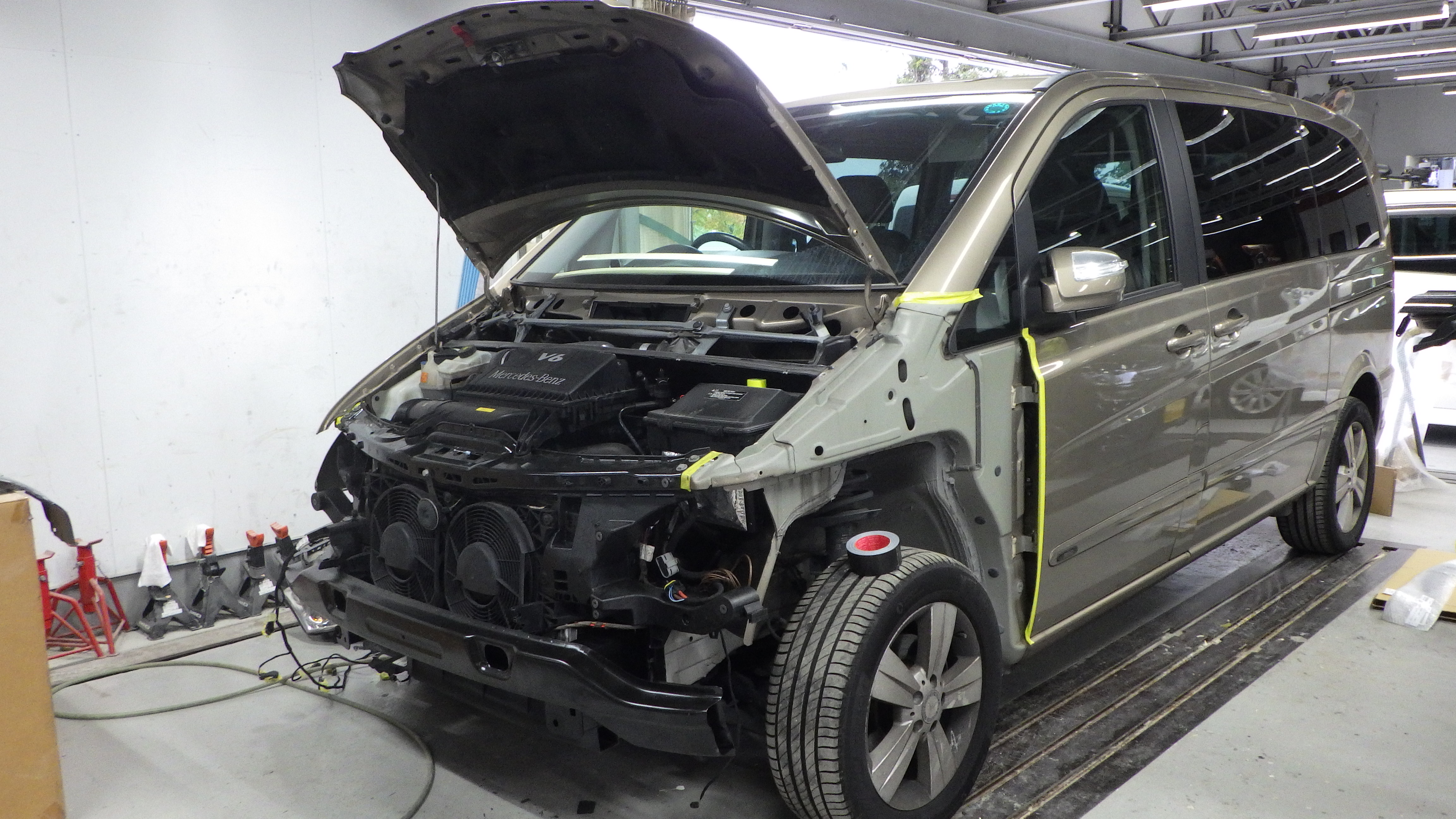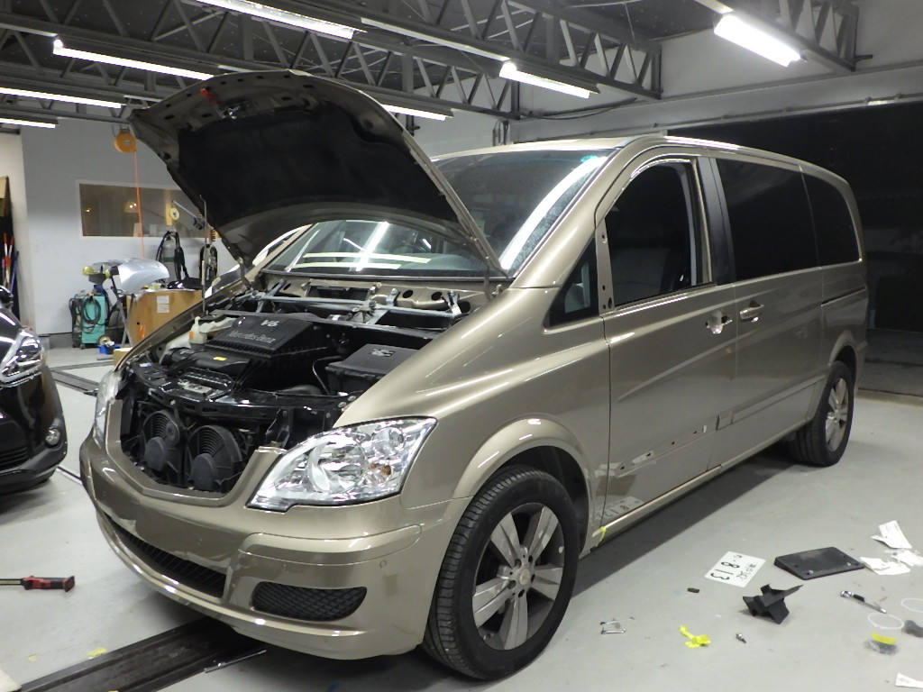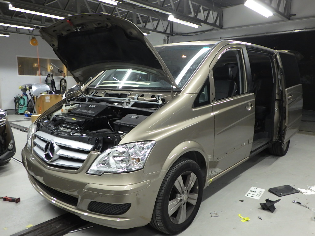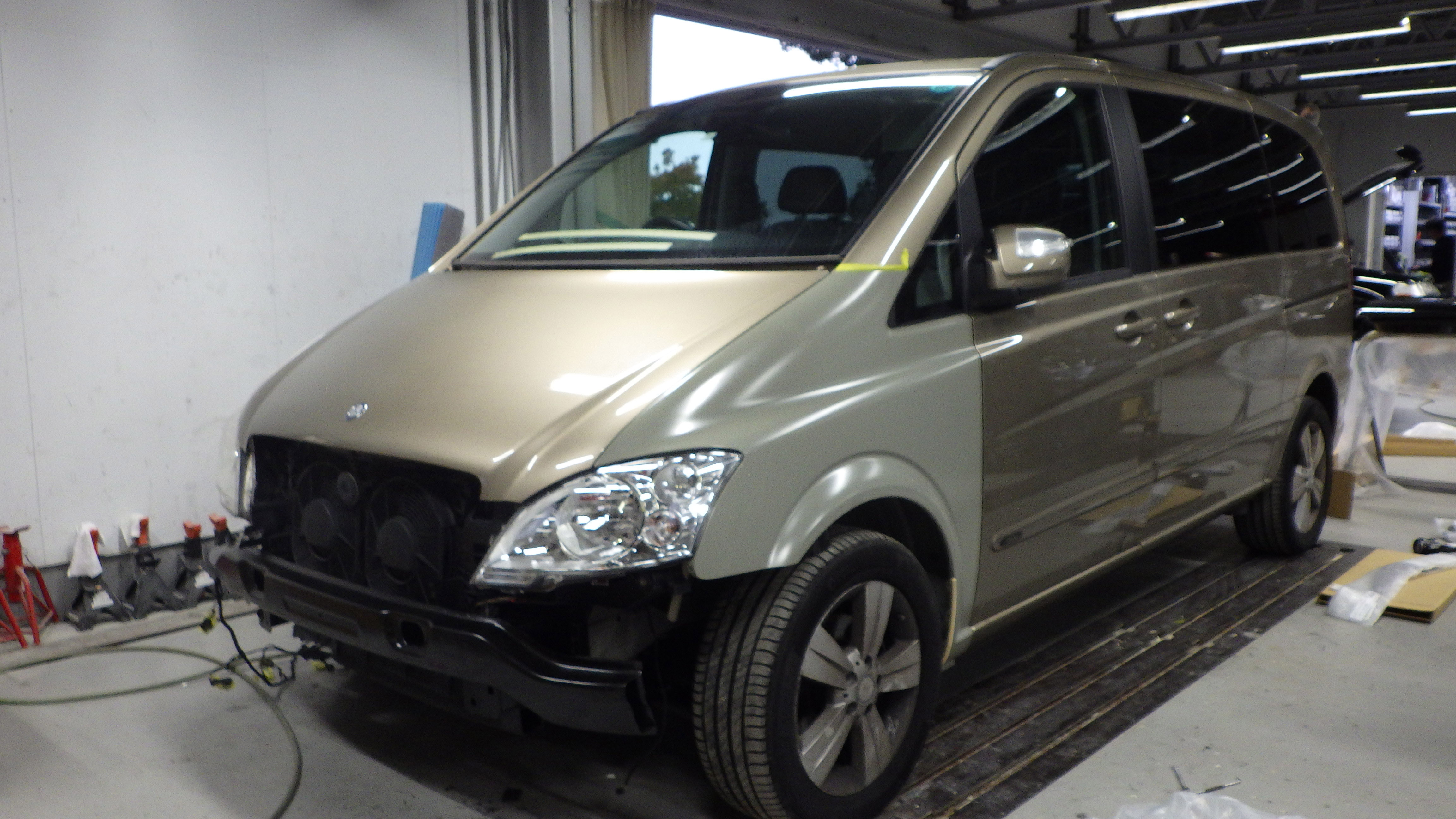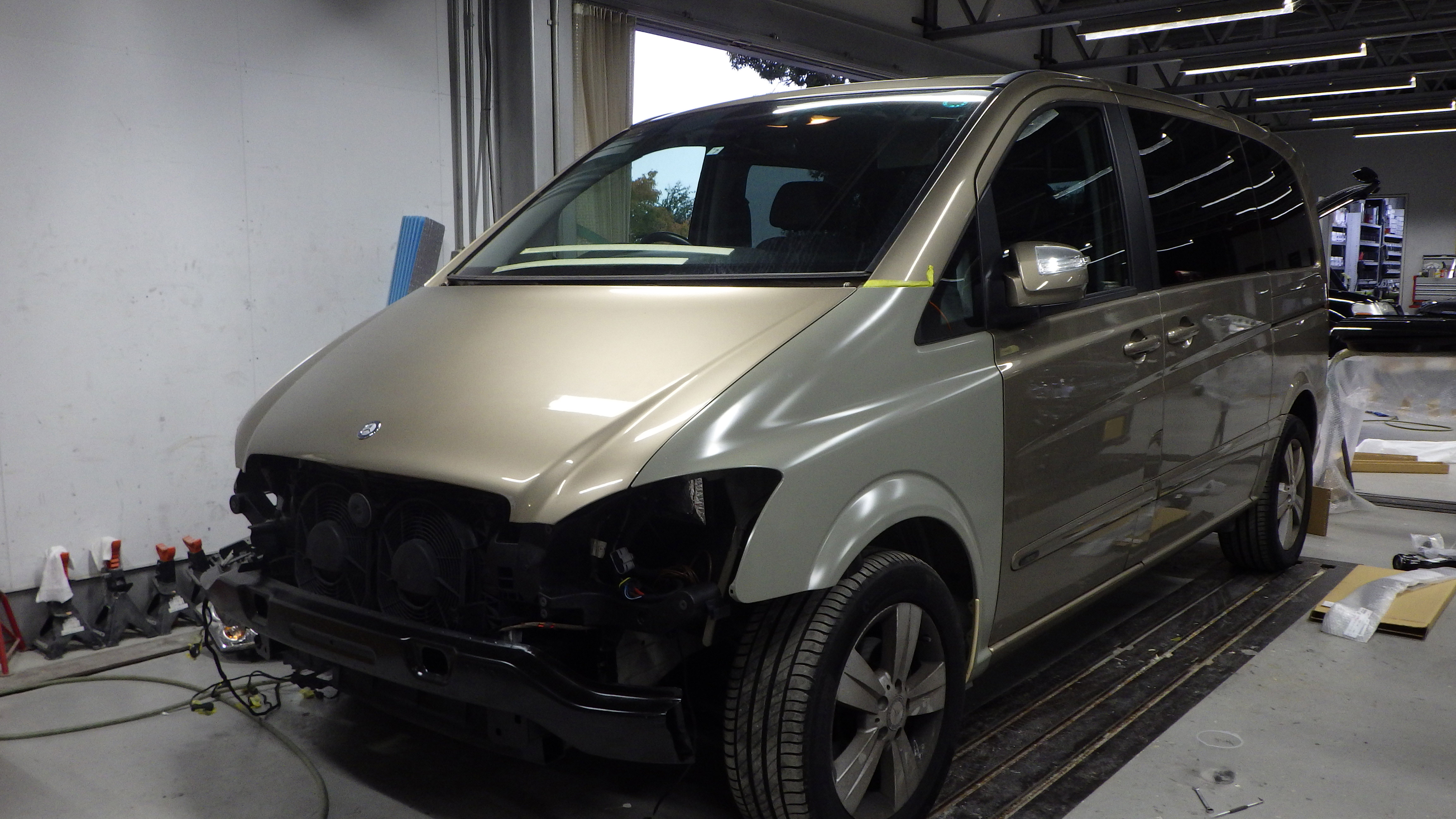 サポートの交換作業の後、フロントフェンダー、ヘッドライト、フロントバンパーの順に、