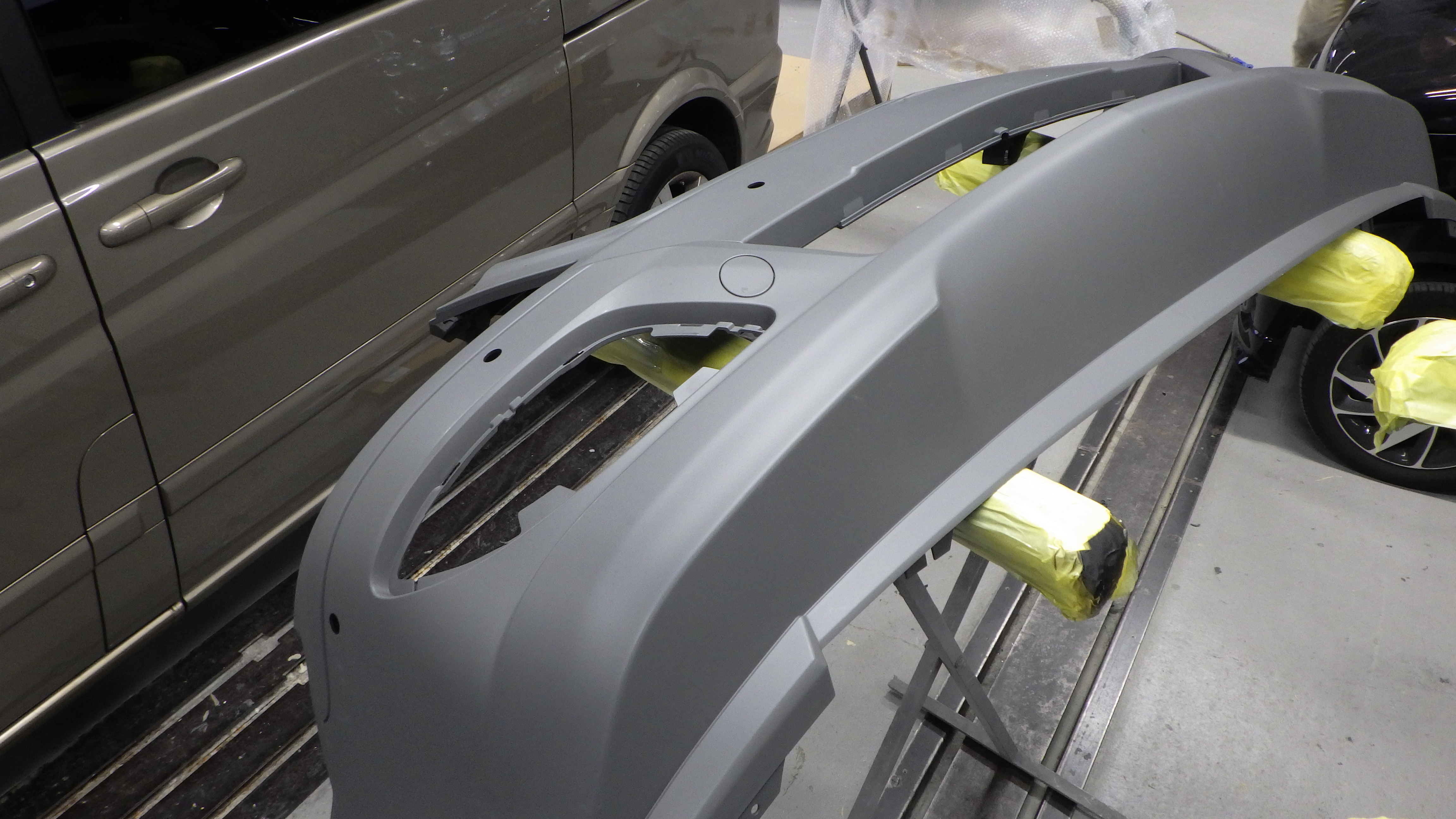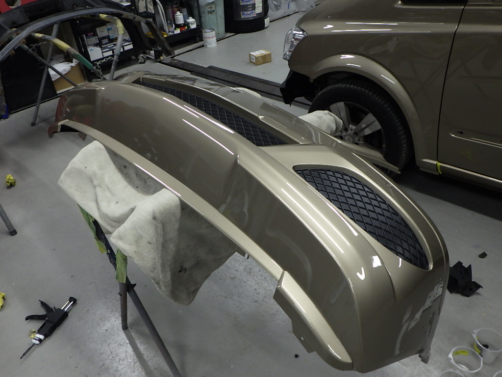 乾燥後、フロントバンパーに構成部品の取り付け作業を行いました。