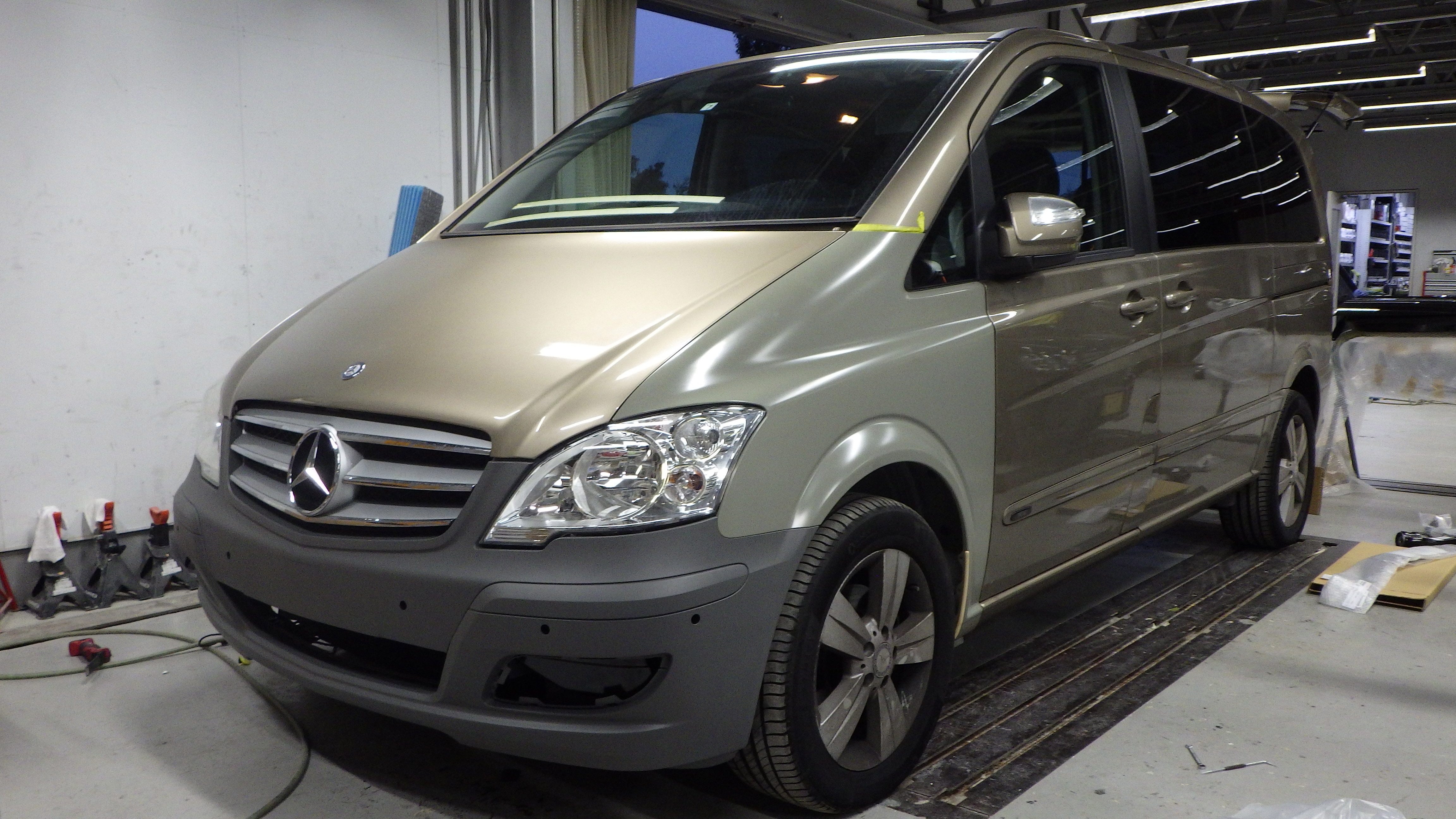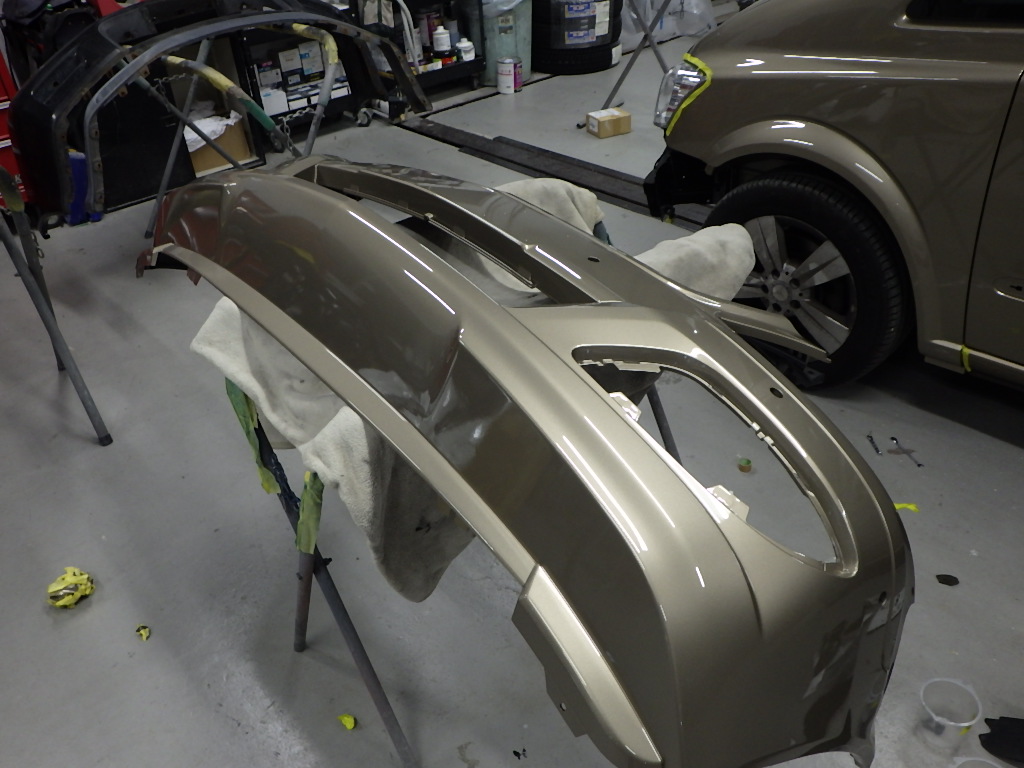 ベースコート(ゴールド)、トップコート(クリヤー)の順に、塗装作業を行いました。