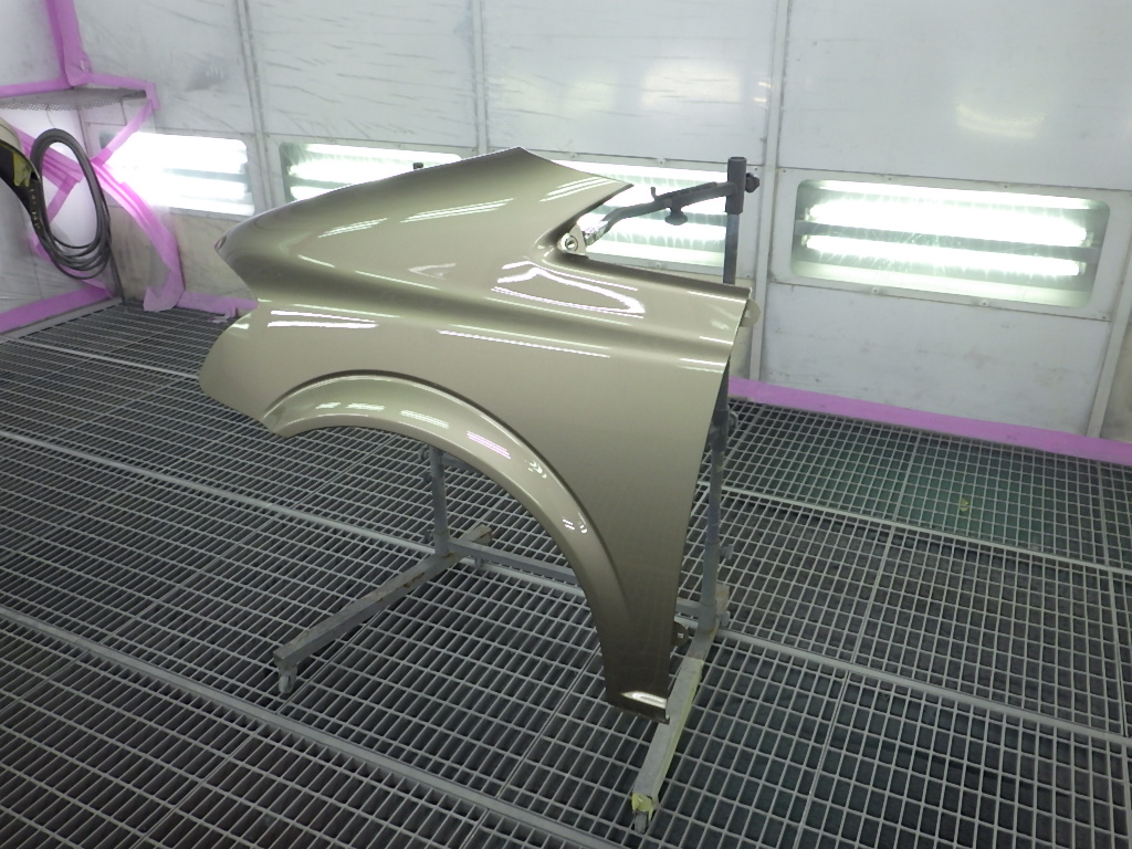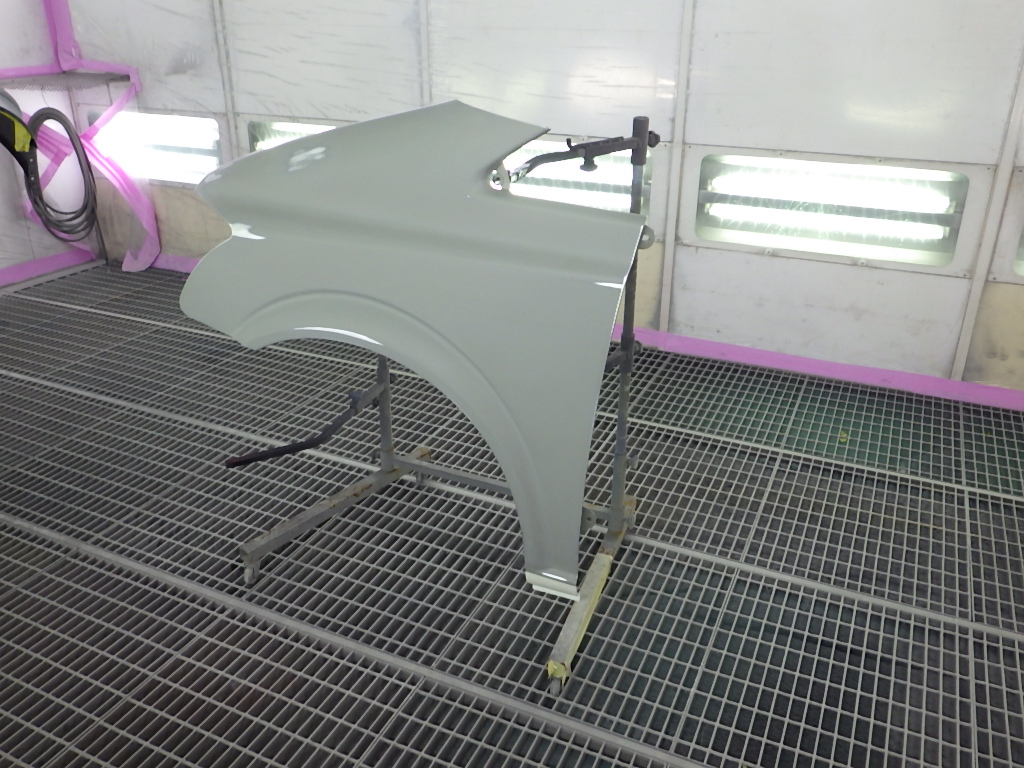 塗装作業の後、ブース内にて塗装箇所の強制乾燥を行いました。