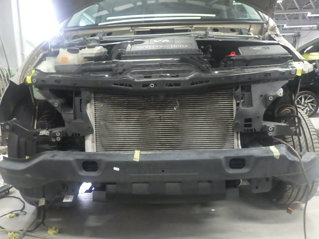 まず初めに、フロントバンパー内部の損傷確認を行う為、