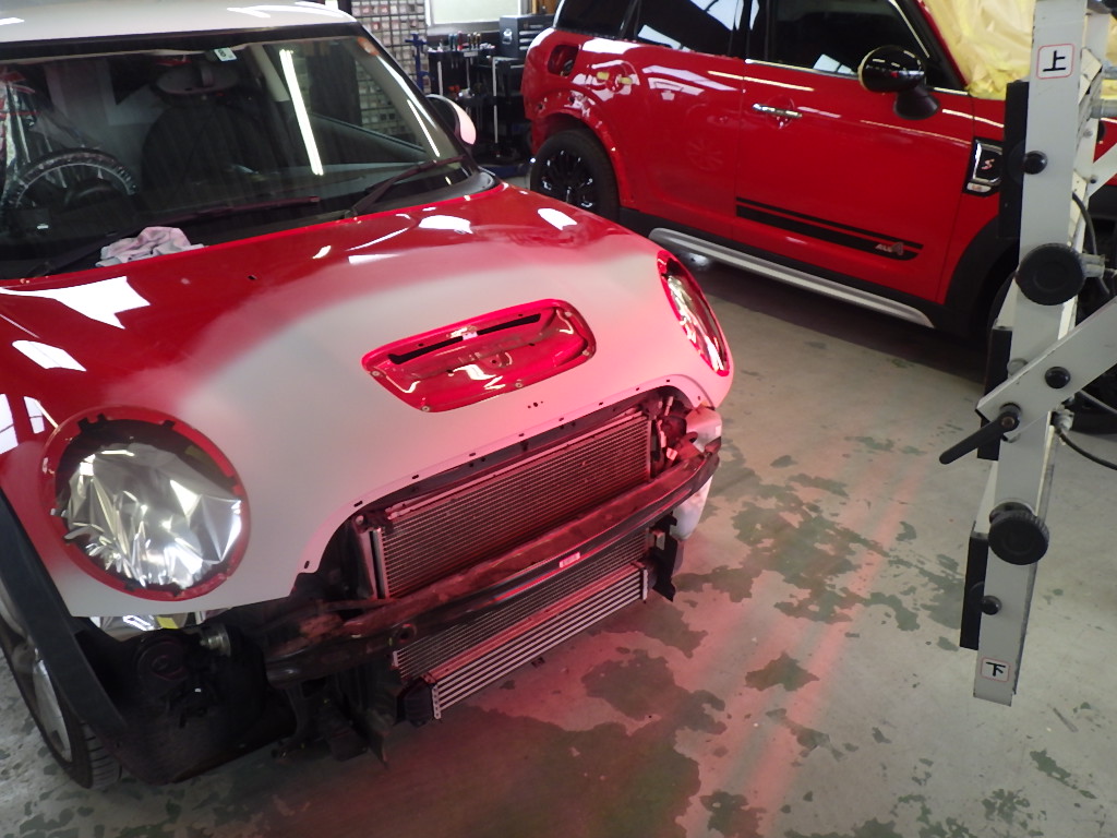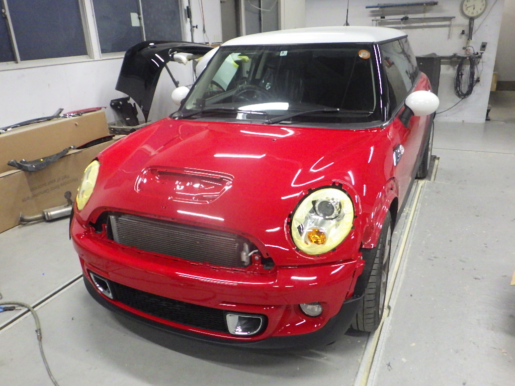 Home » 未分類 » 【鈑金塗装】【事故】奈良県、I様、2011y、MINI、R56、フロントバンパーボンネット損傷へこみ修理レポートです!ありがとうございました。
