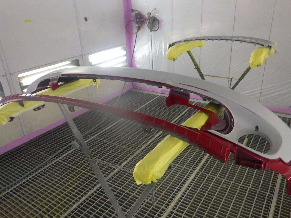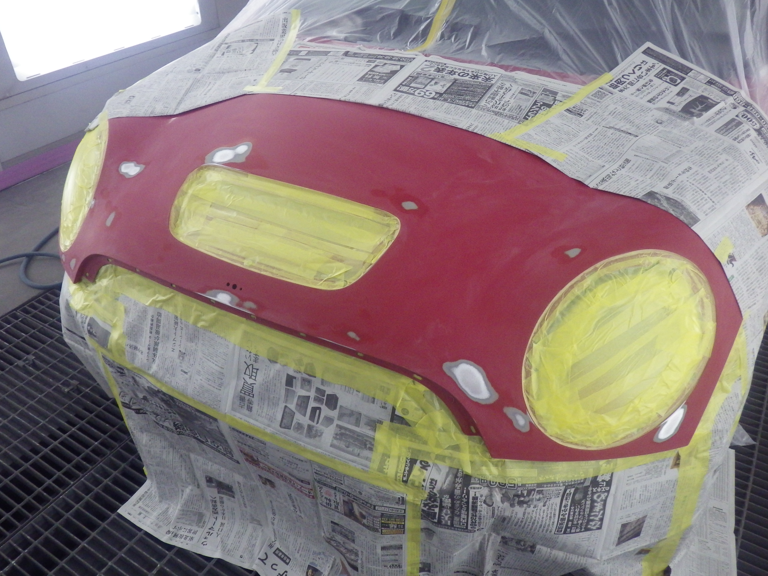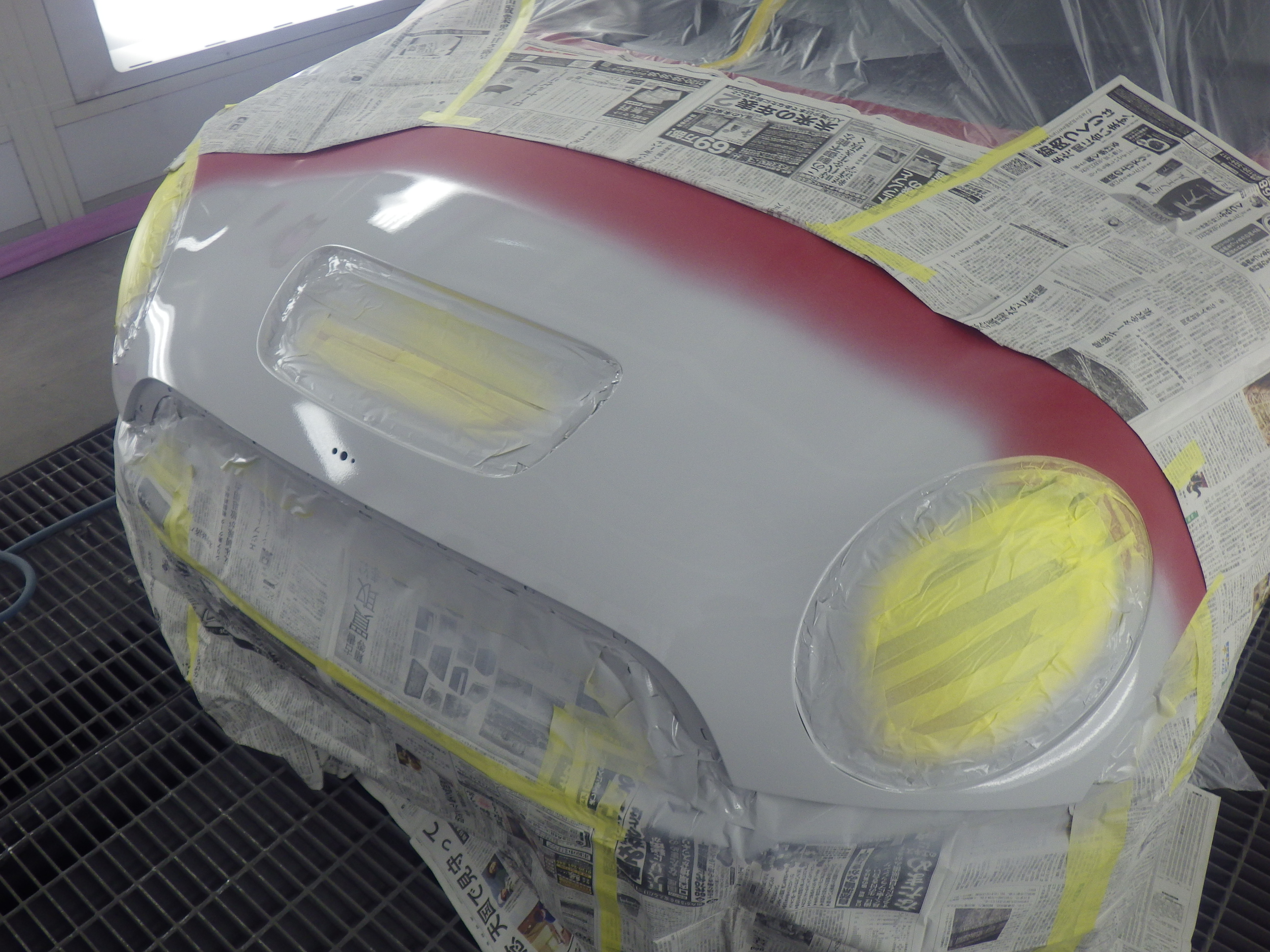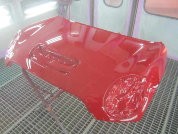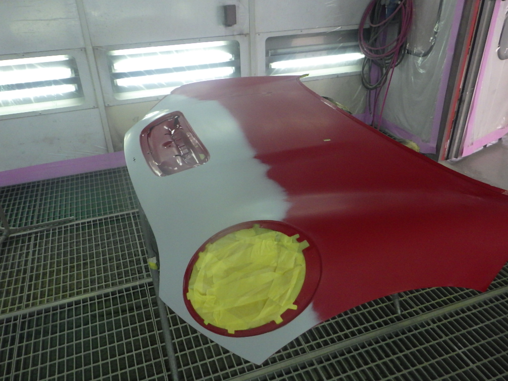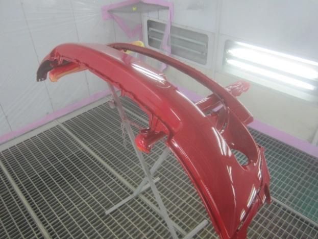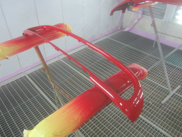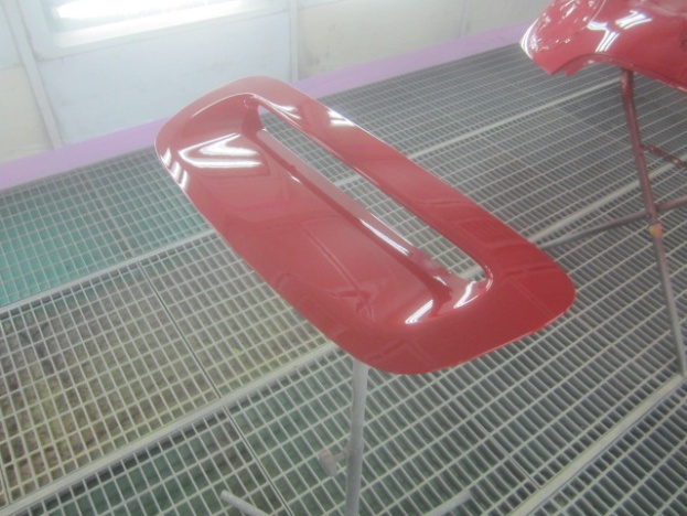 ベースコート(赤)、トップコート(クリヤー)の順に塗装作業を行いました。