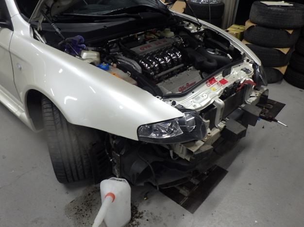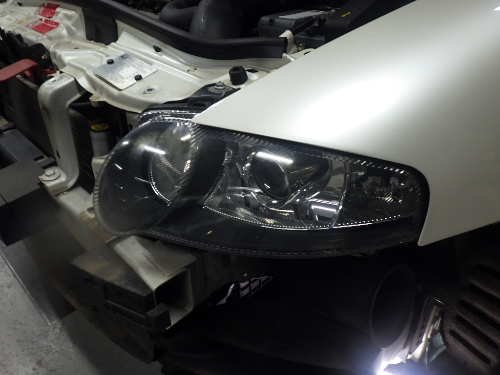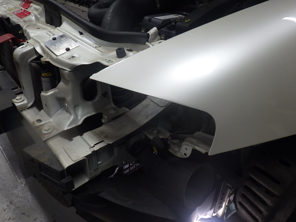 右フロント周り損傷での入庫になります。 入庫確認作業の後、キズ、汚れ防止の為、シートカバー、 ハンドルカバーの取り付け作業を行いました。 修正作業を行う為、分解…