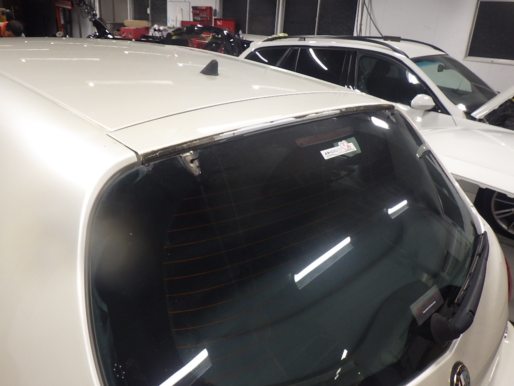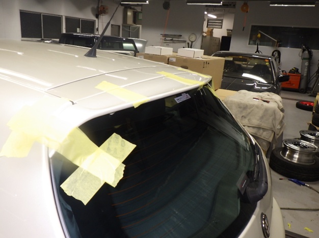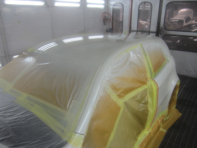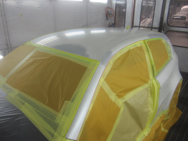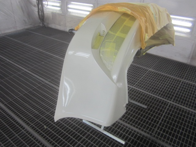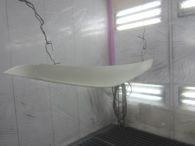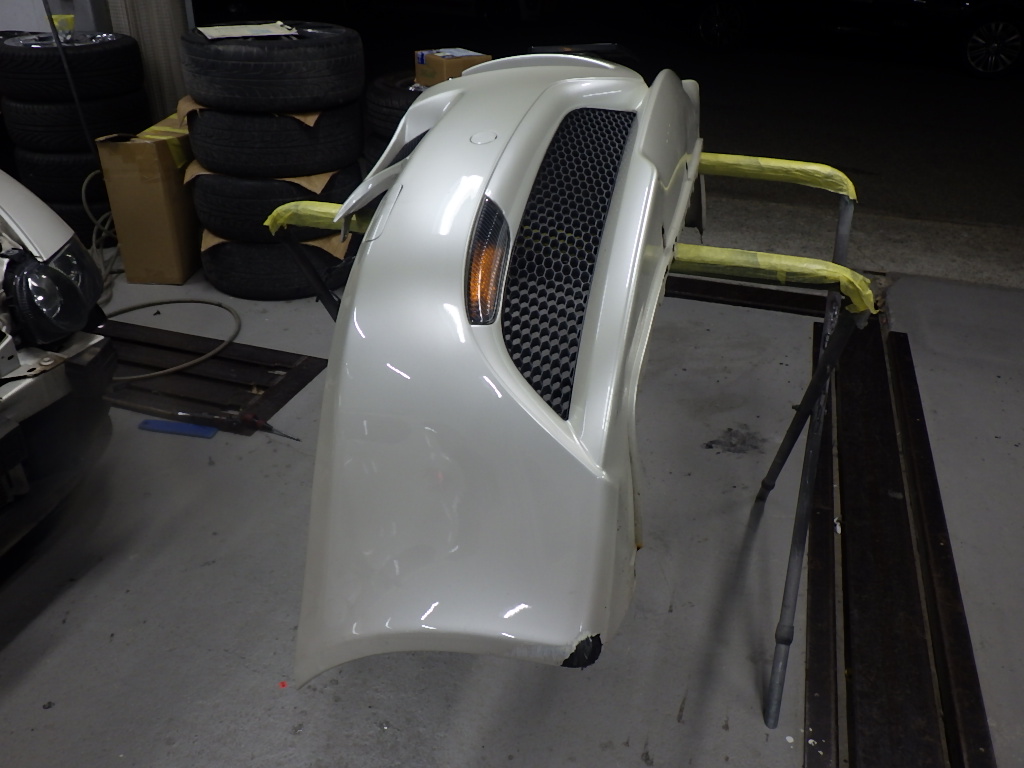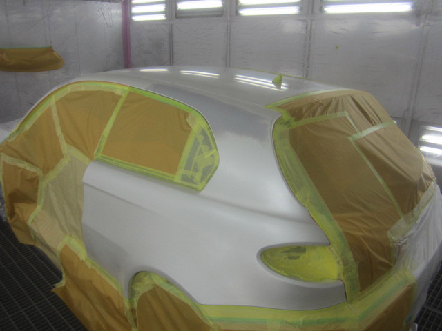 ベースコート(白)、2コート(パール)、トップコート(クリヤー)の順に塗装作業を行いました。