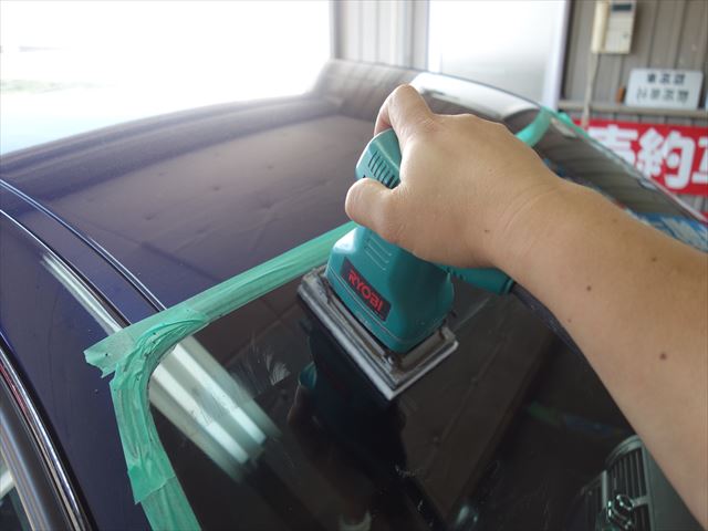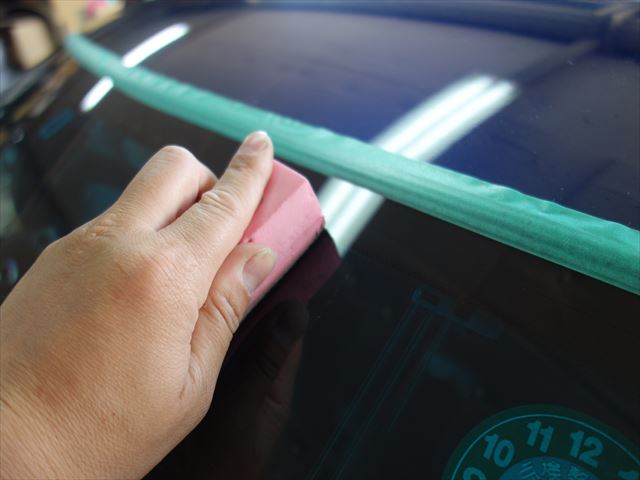 ガラスモールのマスキング作業の後、磨き作業、確認作業を行いました。