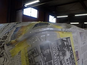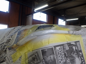 ベースコート(白)、トップコート(クリヤー)の順に塗装作業を行いました。