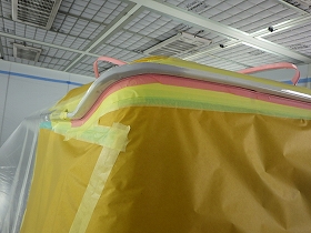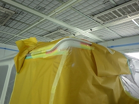 塗布作業の後、塗装準備(足付け、マスキング、脱脂、エアブロー)を行い、