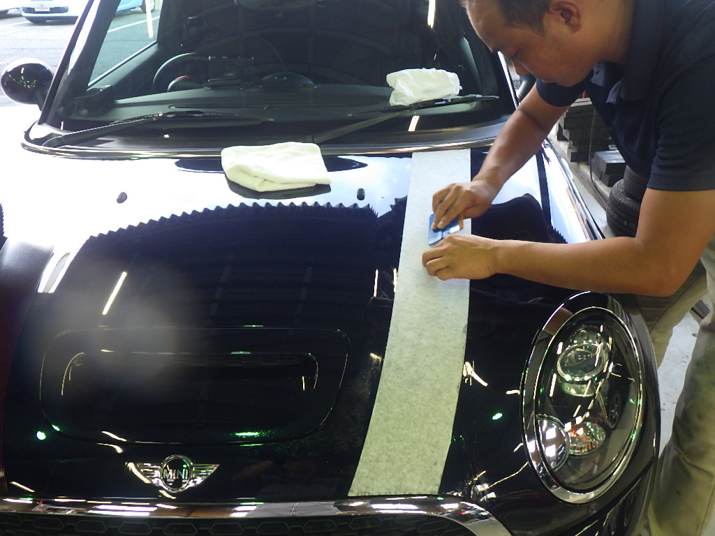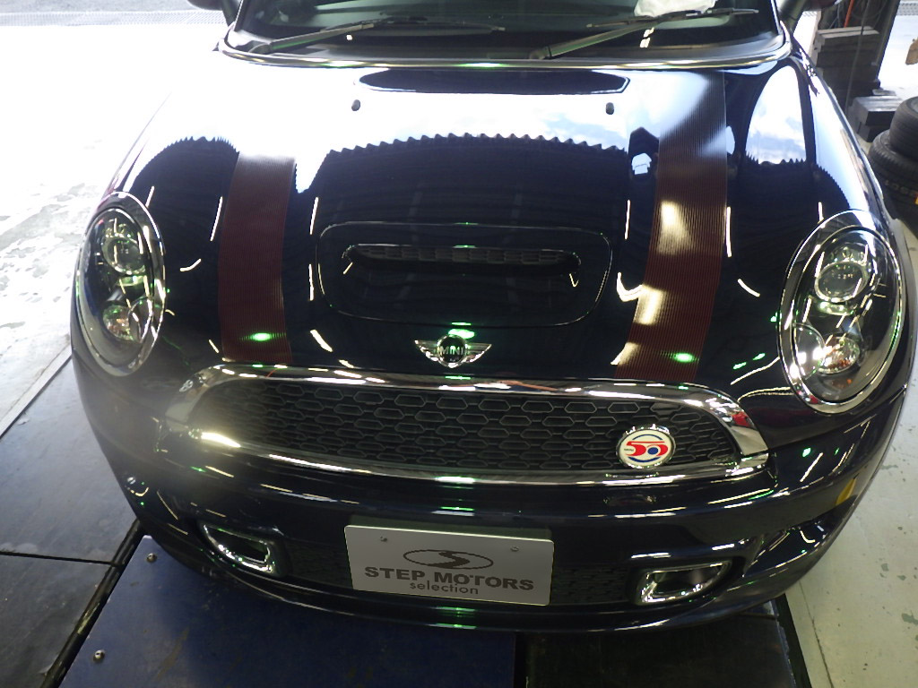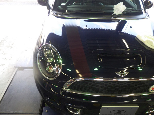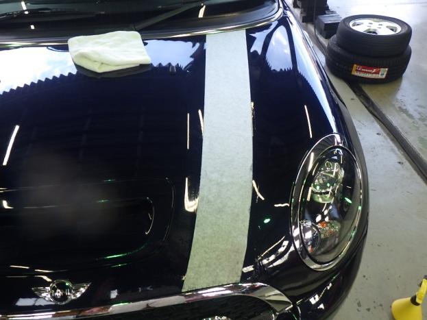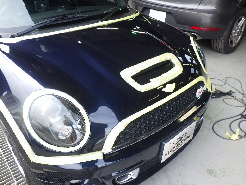 Home » 未分類 » 【鈑金塗装】兵庫県神戸市、N様、2008y、MINI、R56、ボンネットストライプ張替え修理レポートです!ありがとうございました。
