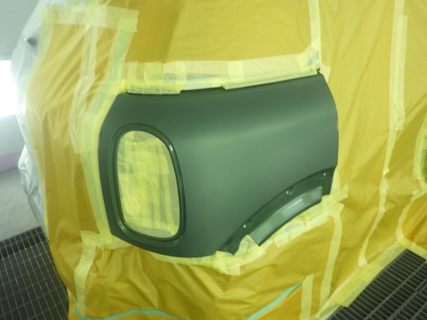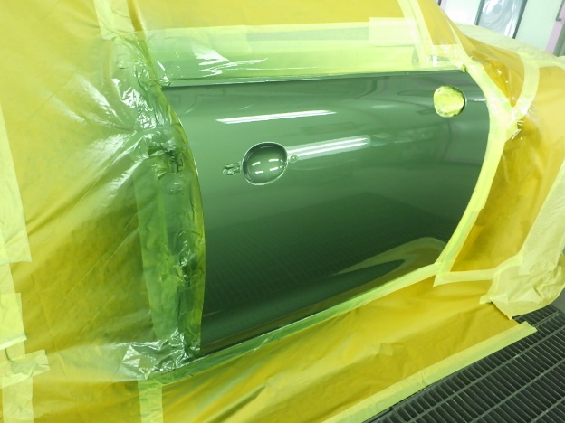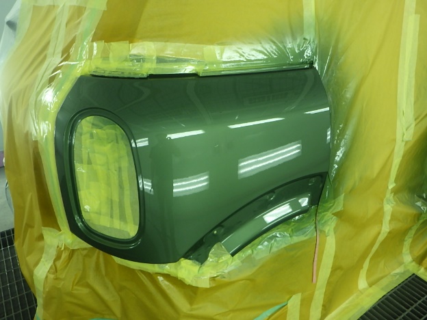 ベースコート(緑)、トップコート(クリヤー)の順に塗装作業を行いました。