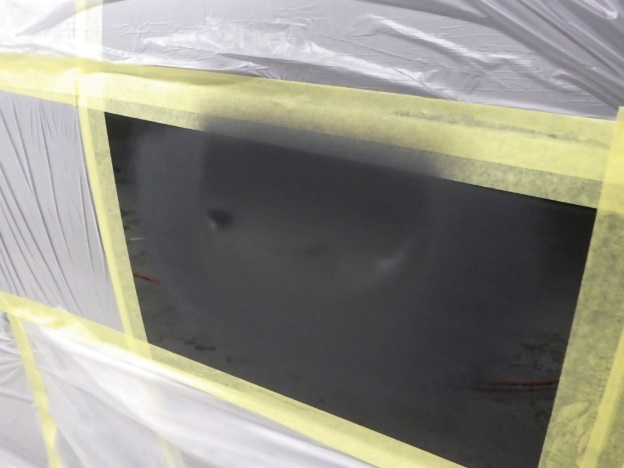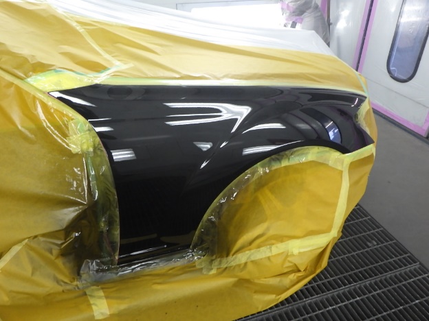 ベースコート(黒)、トップコート(クリヤー)の順に塗装作業を行いました。