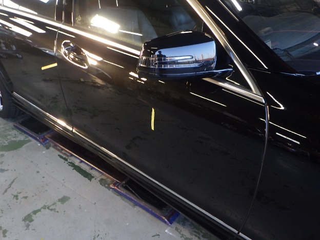 【鈑金塗装】兵庫県神戸市、T様、2013y、メルセデス・ベンツ、Sクラス(W221) 、フロントドア鈑金修理レポートです!有難うございました