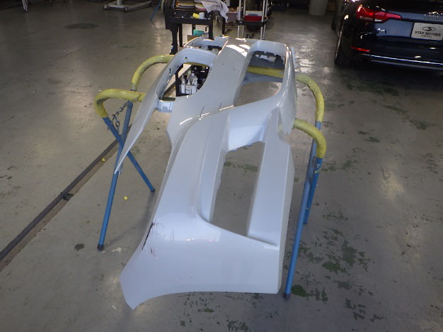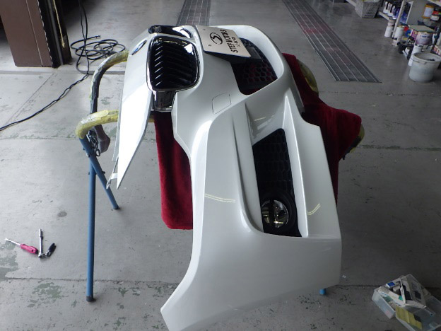 ベースコート(白、パール)、トップコート(クリヤー)の順に塗装作業を行いました。