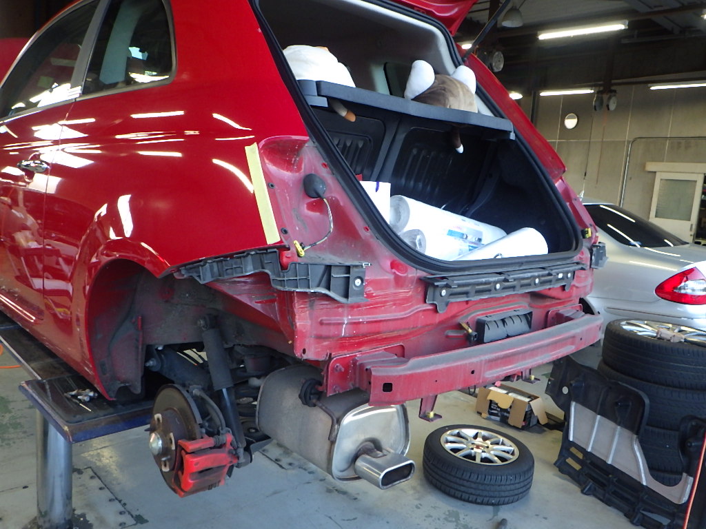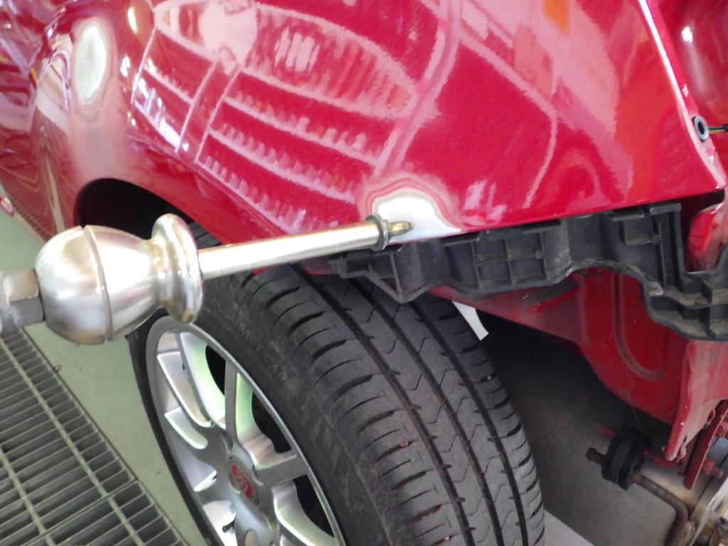 分解作業の後、凹み箇所の板金作業を行いました。