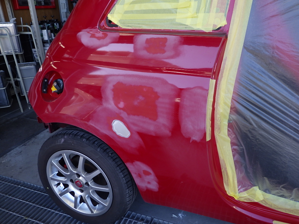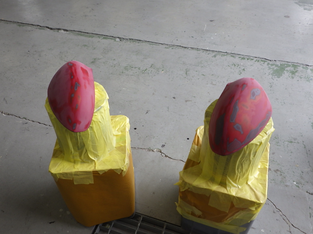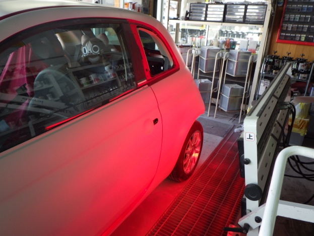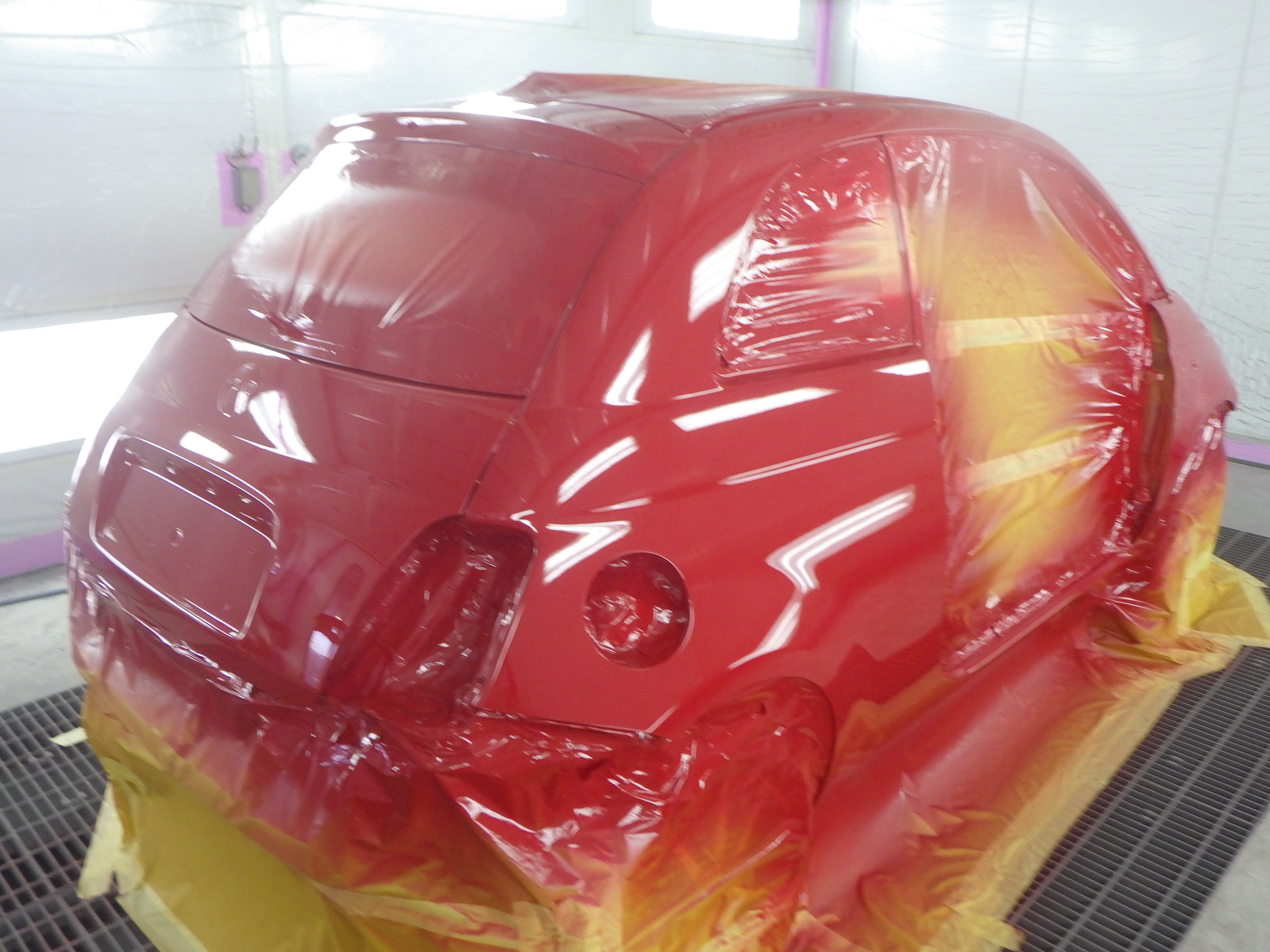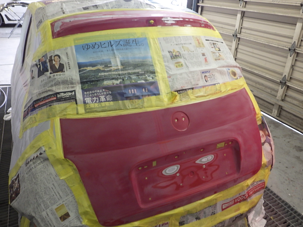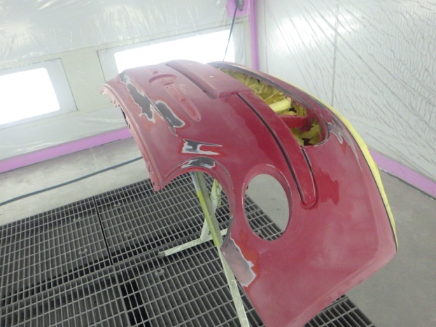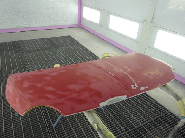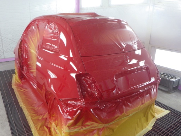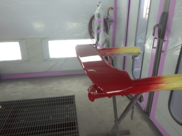 ベースコート(赤)、トップコート(クリヤー)の順に塗装作業を行いました。