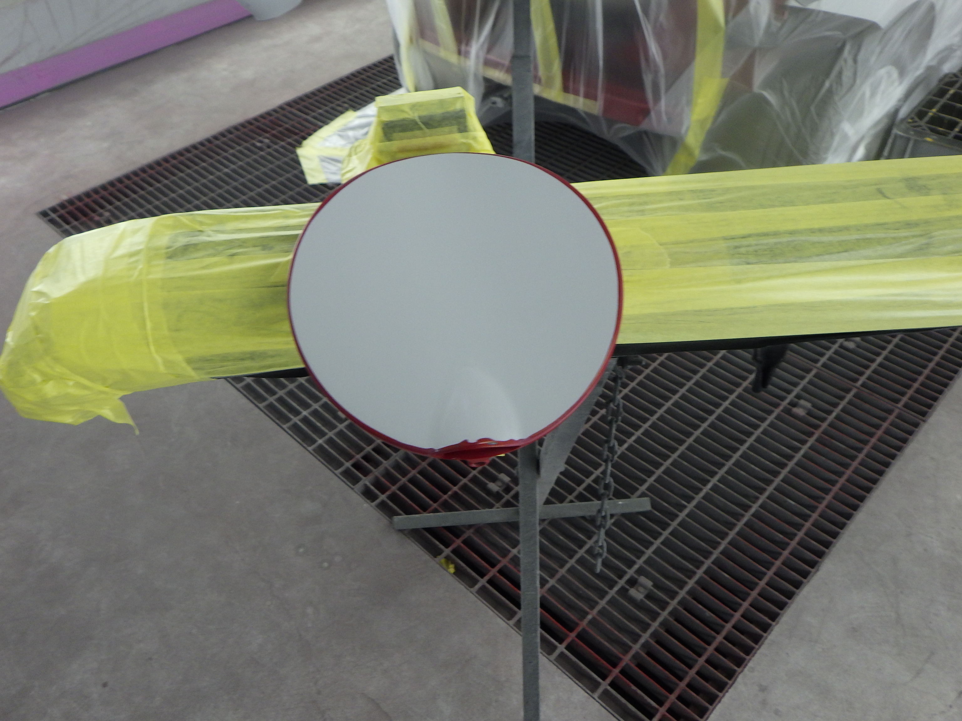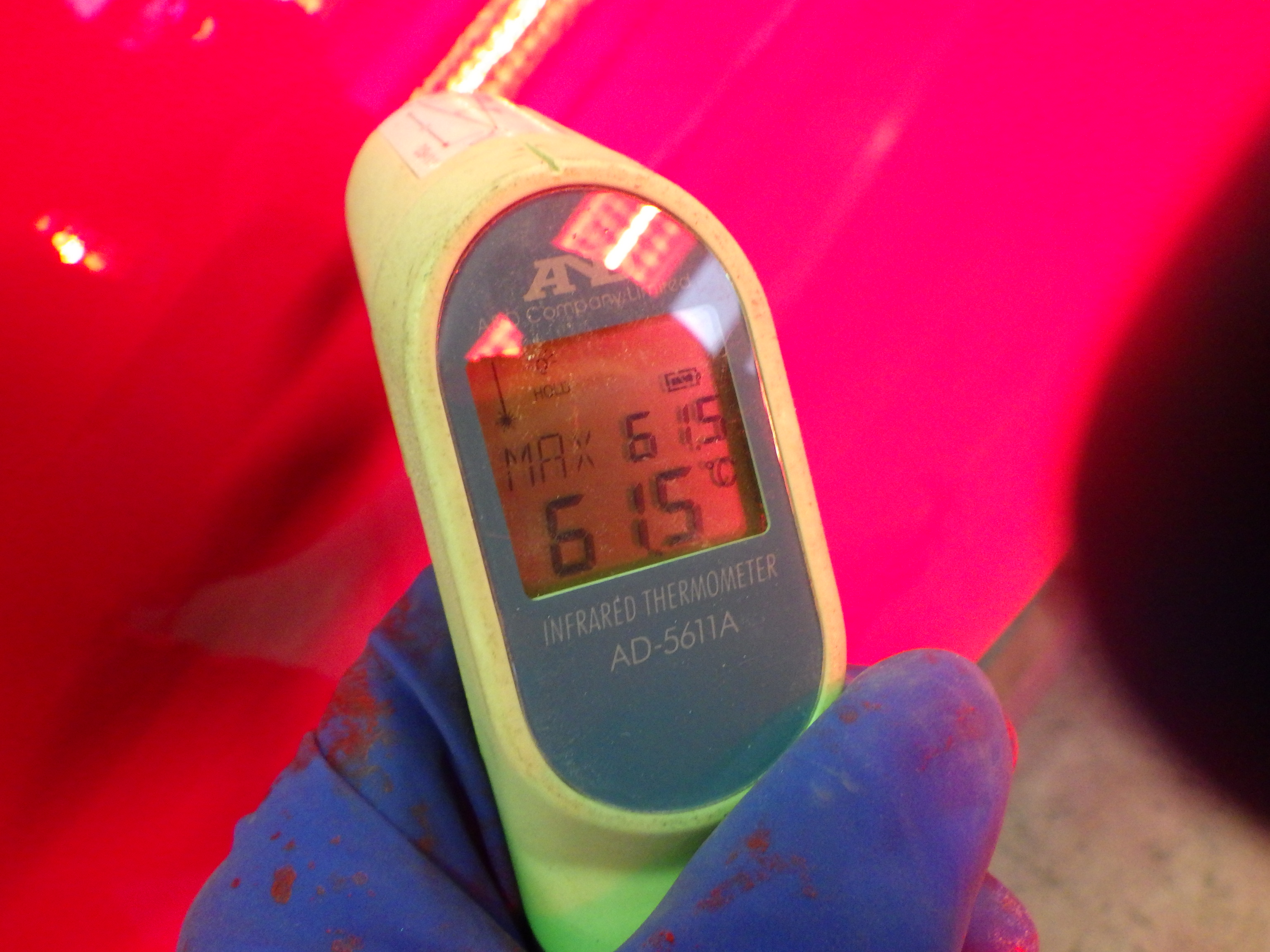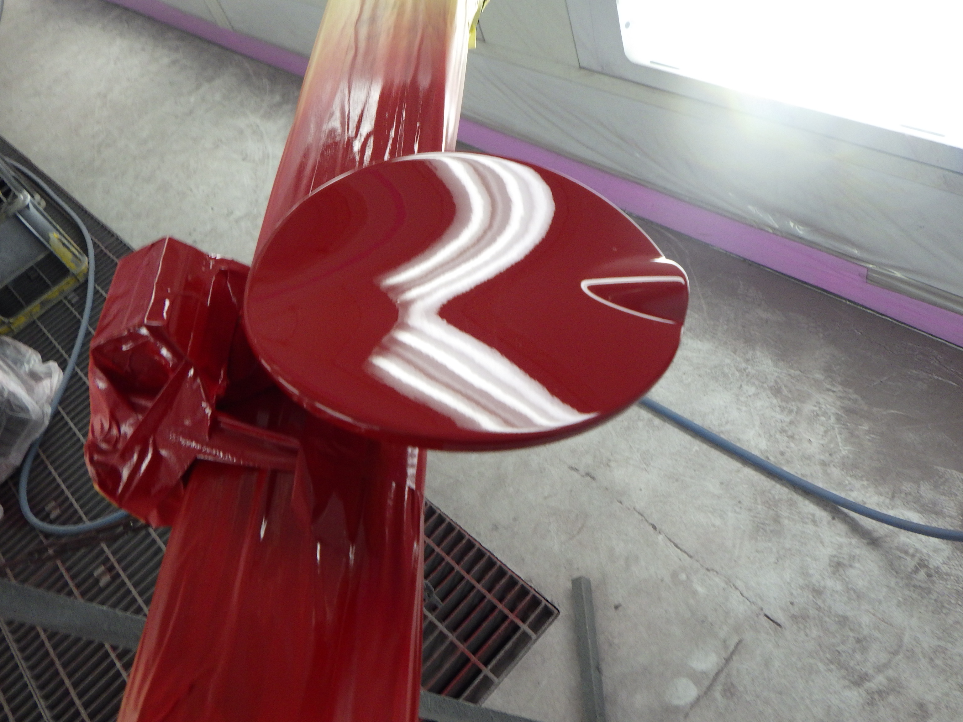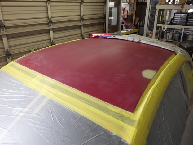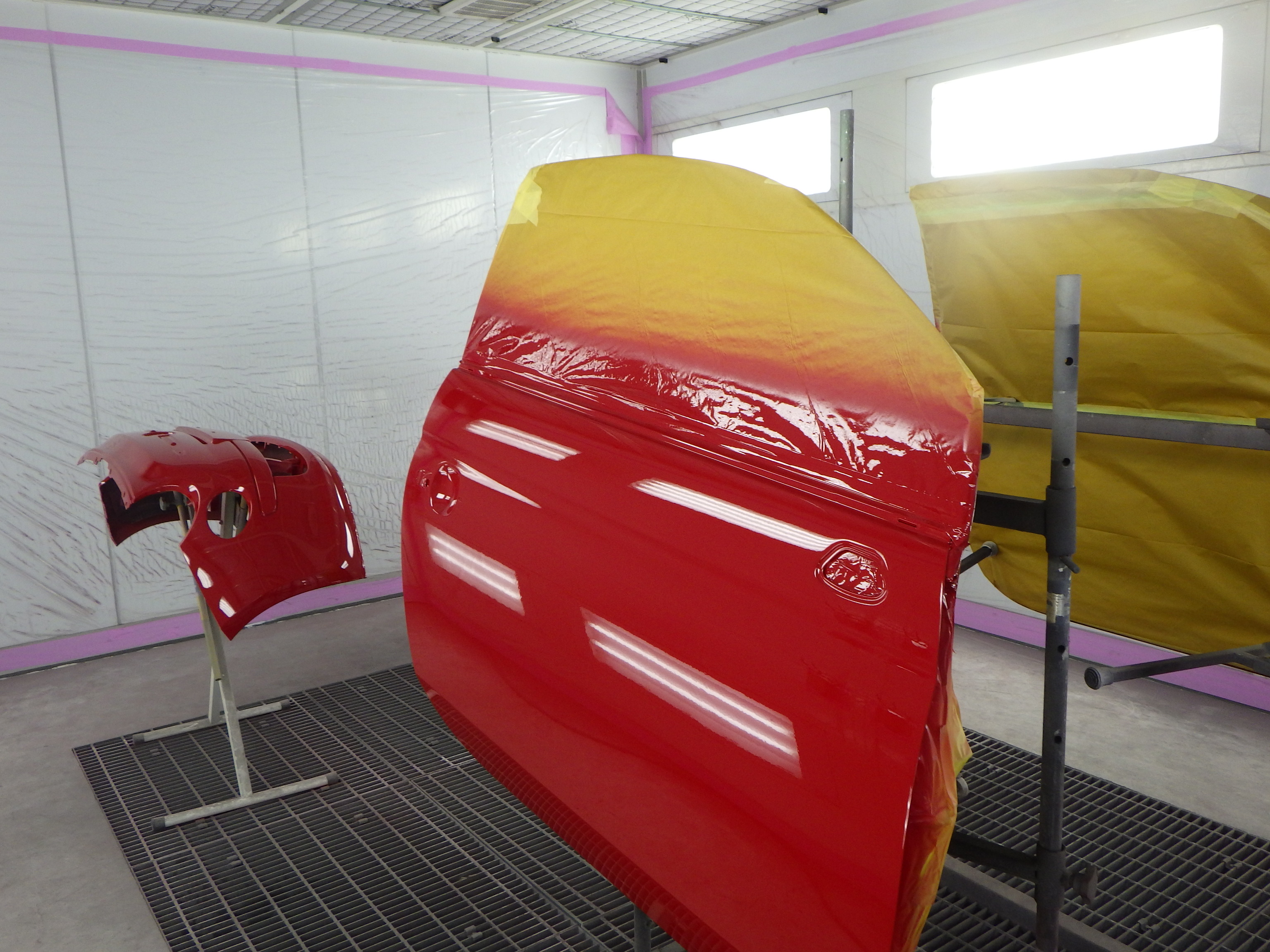 ベースコート(赤)、トップコート(クリヤー)の順に塗装作業を行いました。