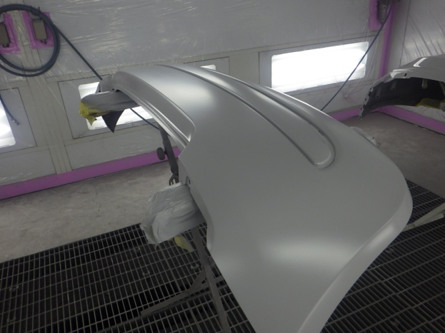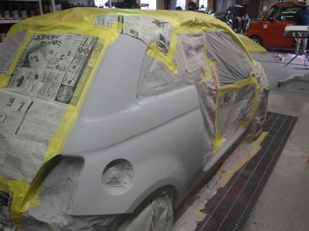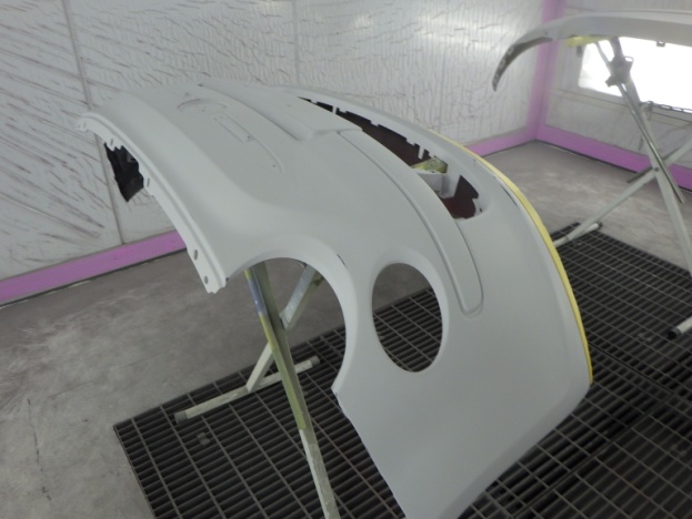 密着性向上の為、プライマーの塗装作業を行い、サフェーサーの塗装作業を行いました。